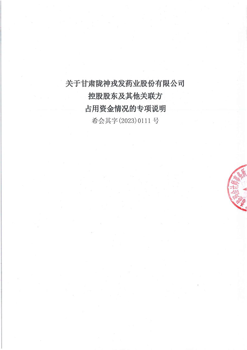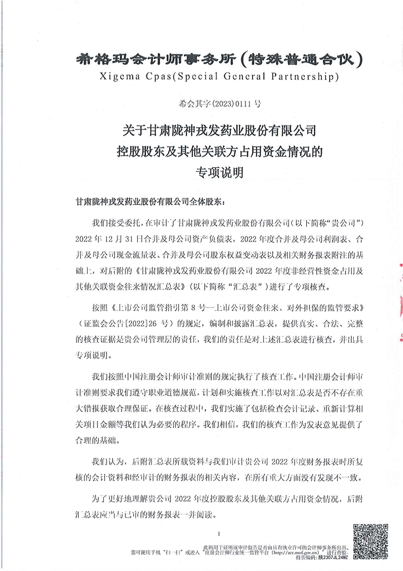 控股股東及其它關(guān)聯(lián)方資金占用情況的專項說明