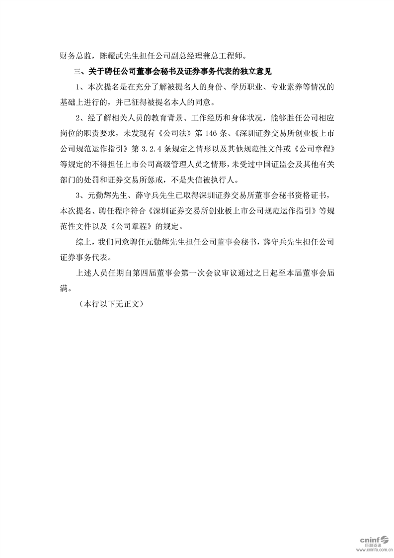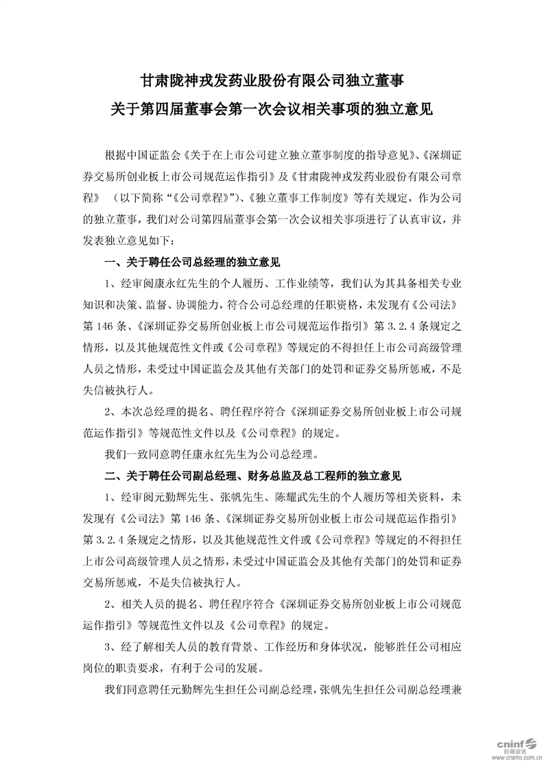 獨(dú)立董事關(guān)于第四屆董事會(huì)第一次會(huì)議相關(guān)事項(xiàng)的獨(dú)立意見