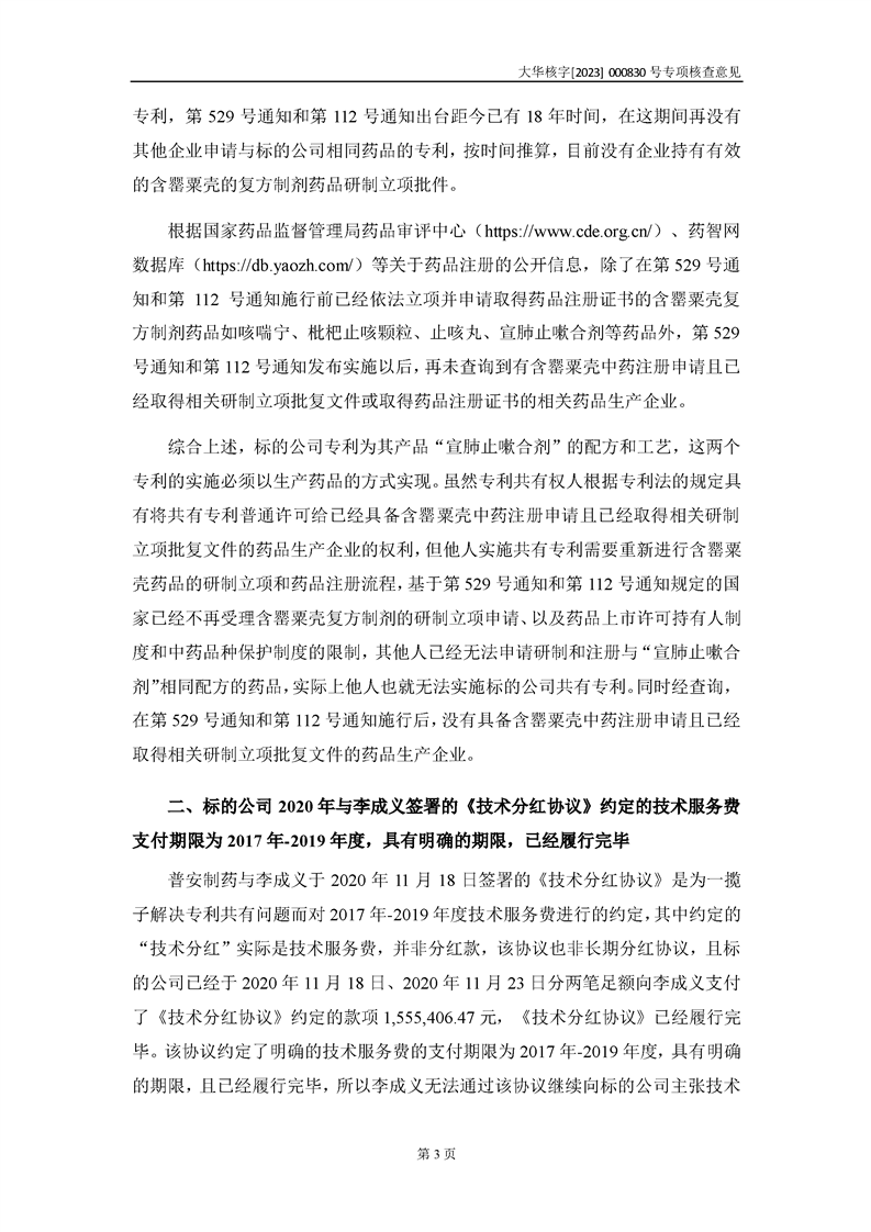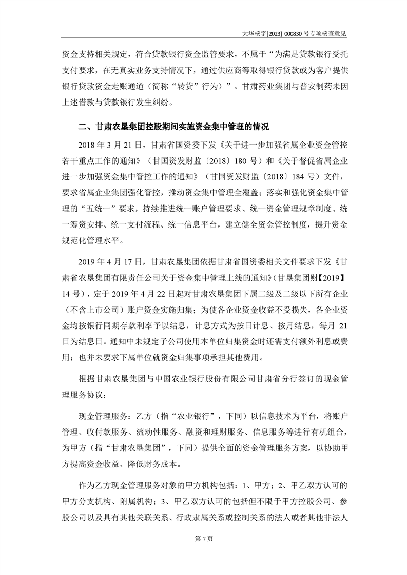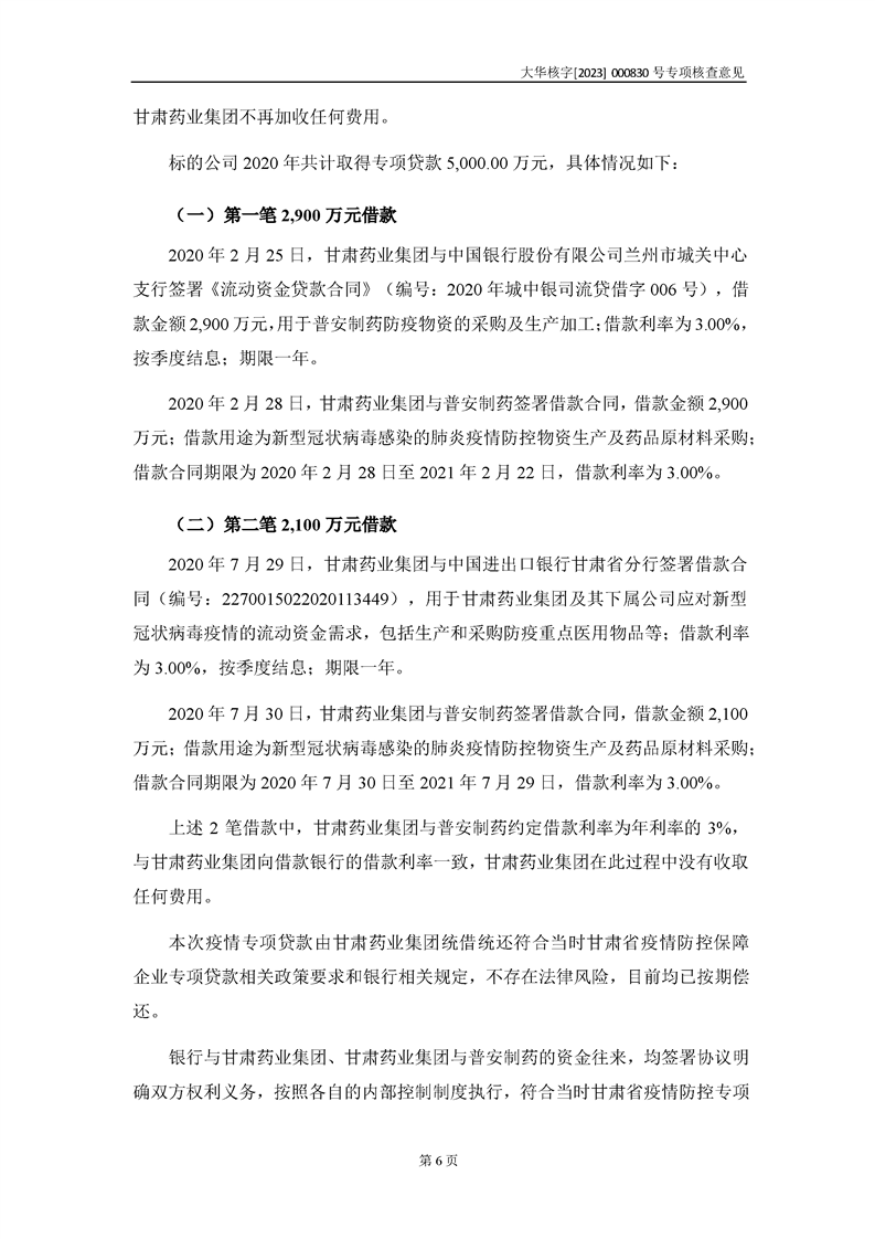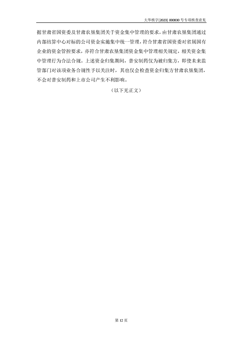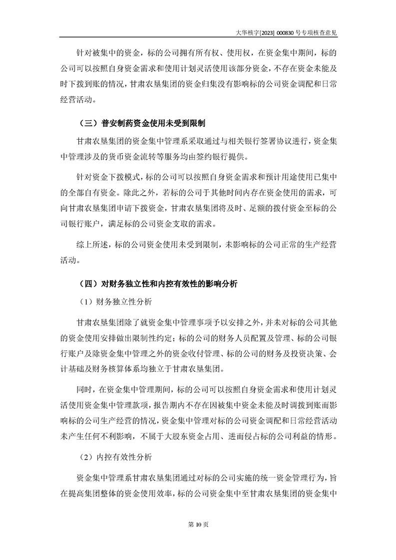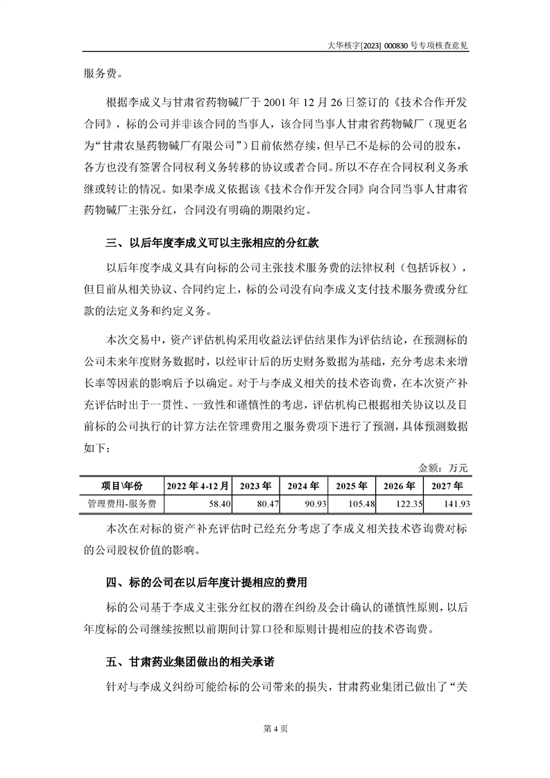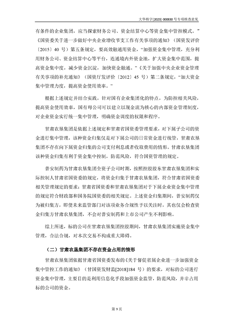 大華會(huì)計(jì)師事務(wù)所關(guān)于甘肅隴神戎發(fā)藥業(yè)股份有限公司重大資產(chǎn)購(gòu)買暨關(guān)聯(lián)交易相關(guān)問(wèn)題補(bǔ)充說(shuō)明的專項(xiàng)核查意見(jiàn)--大華核字[2023]000830號(hào)
