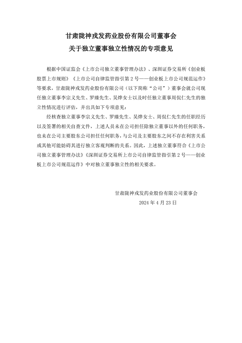 董事會對獨董獨立性評估的專項意見