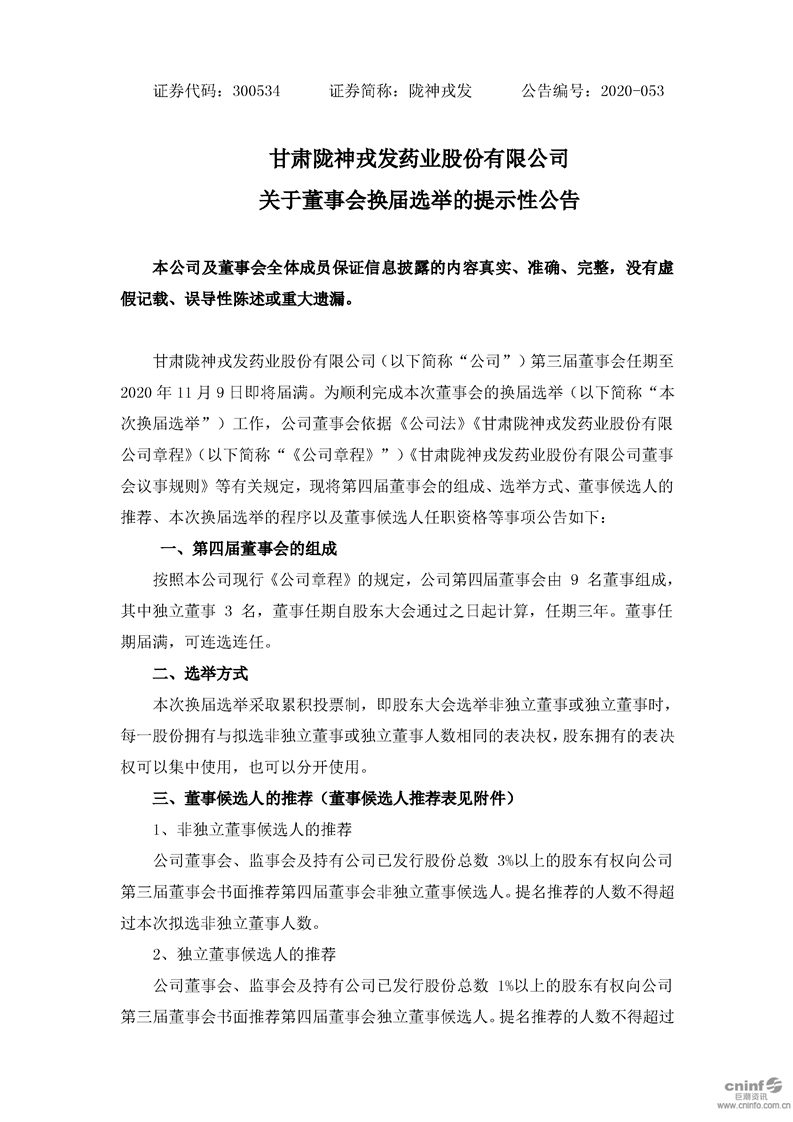 關(guān)于董事會換屆選舉的提示性公告