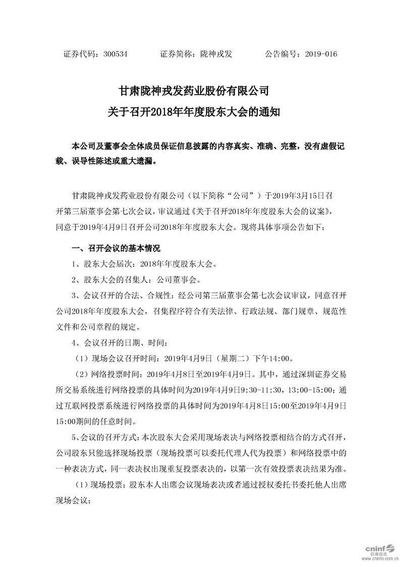 關于召開2018年年度股東大會的通知