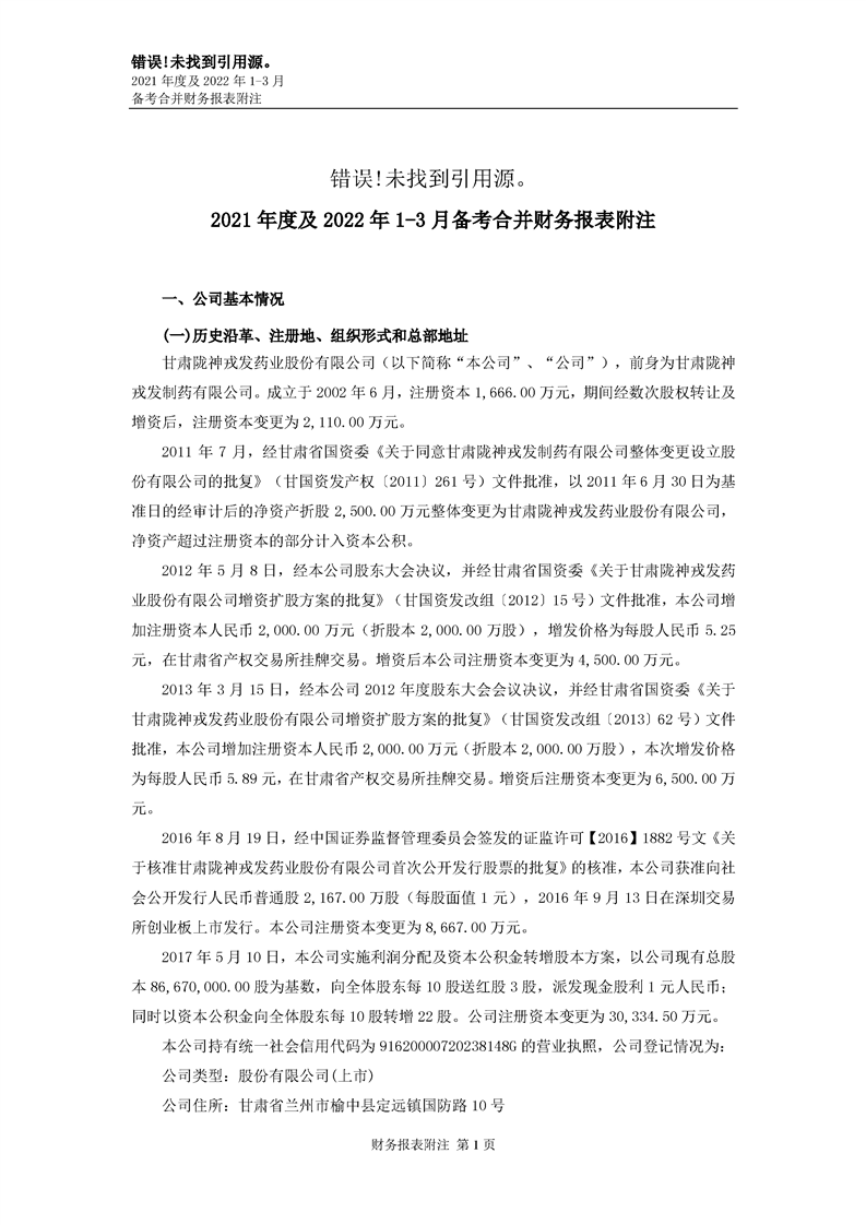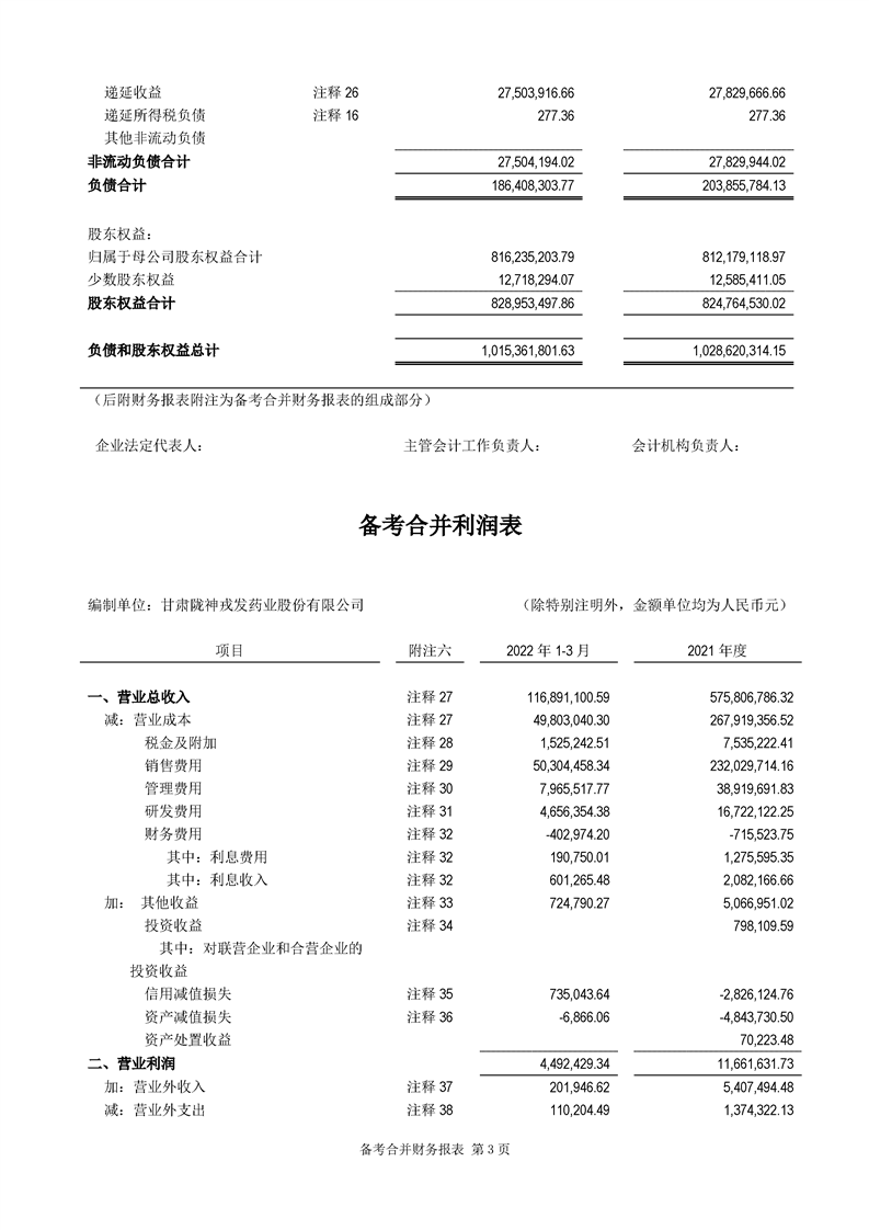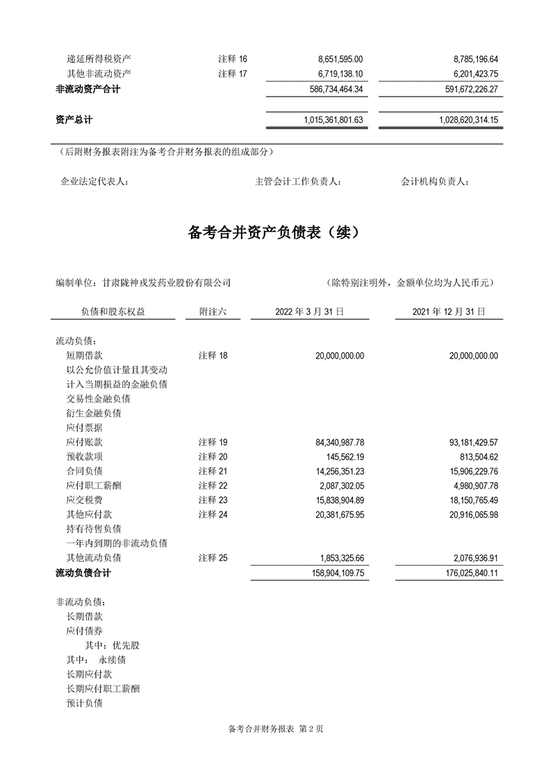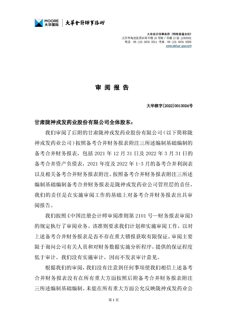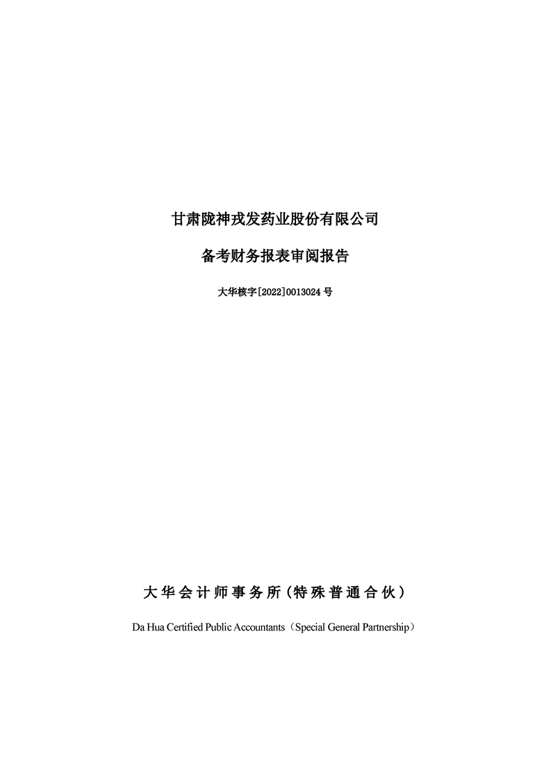 甘肅隴神戎發(fā)藥業(yè)股份有限公司備考財(cái)務(wù)報(bào)表審閱報(bào)告