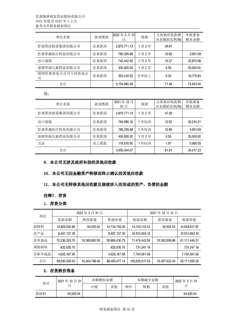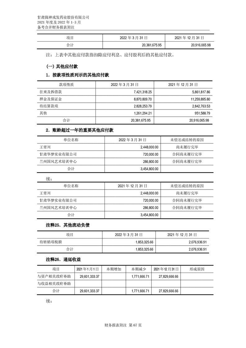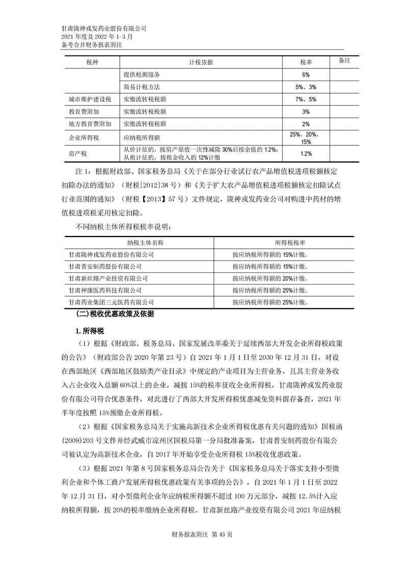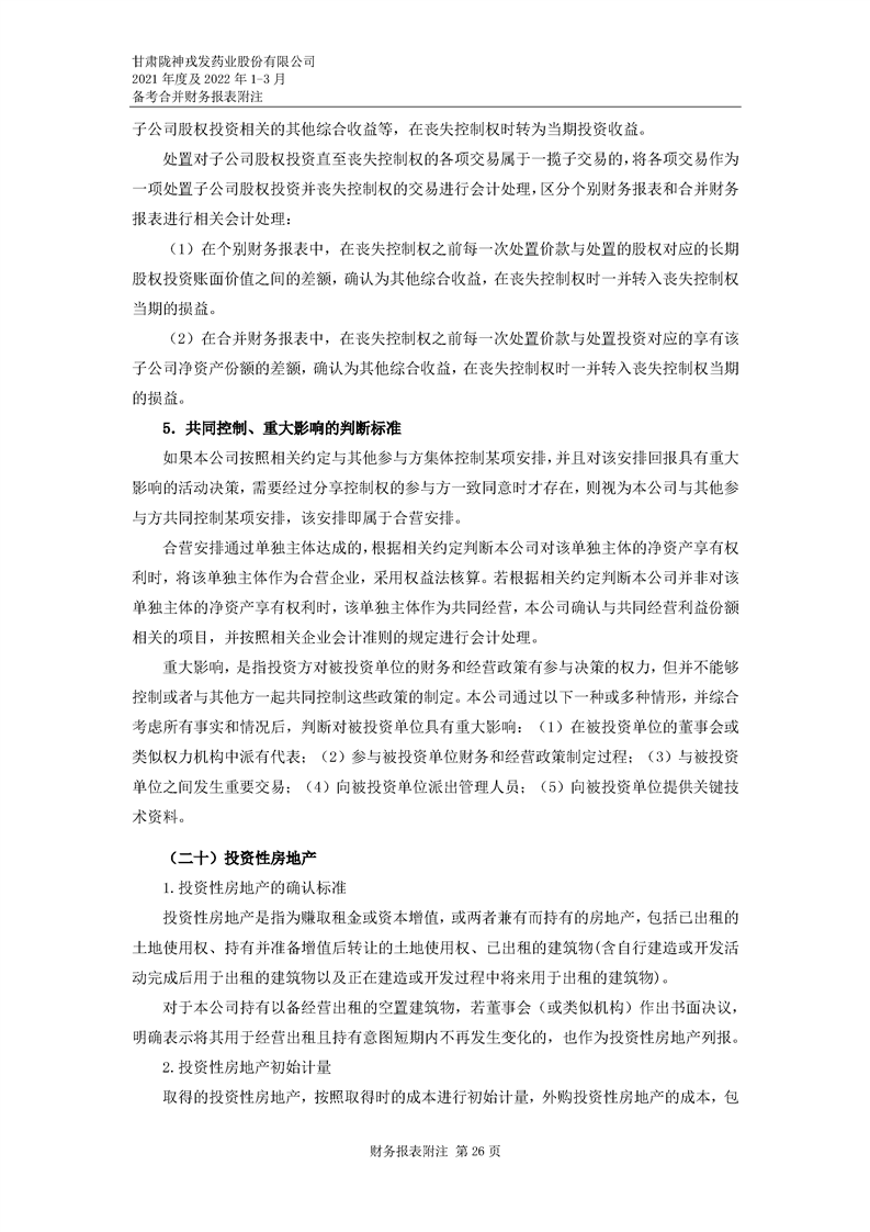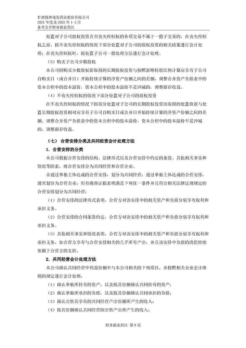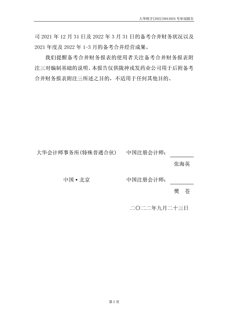 甘肅隴神戎發(fā)藥業(yè)股份有限公司備考財(cái)務(wù)報(bào)表審閱報(bào)告