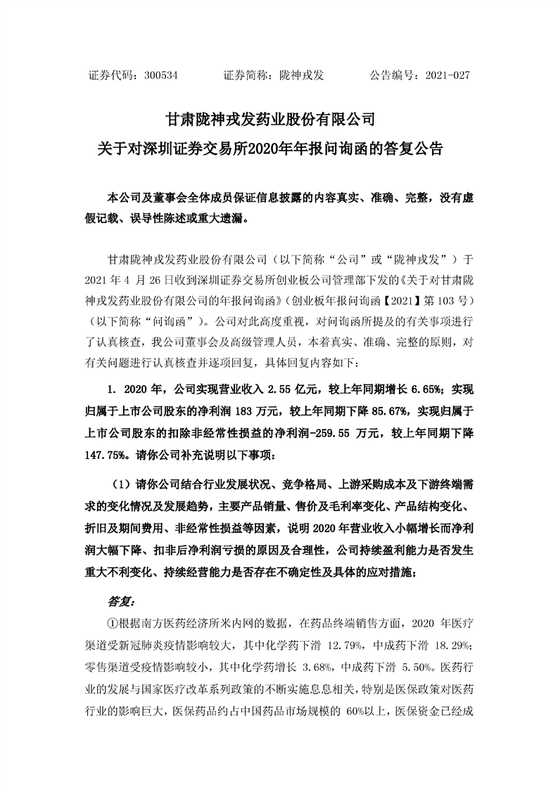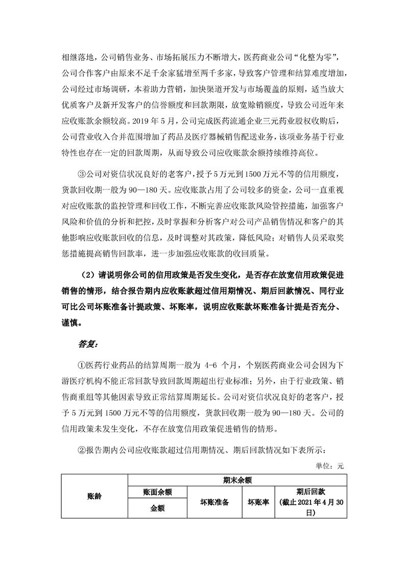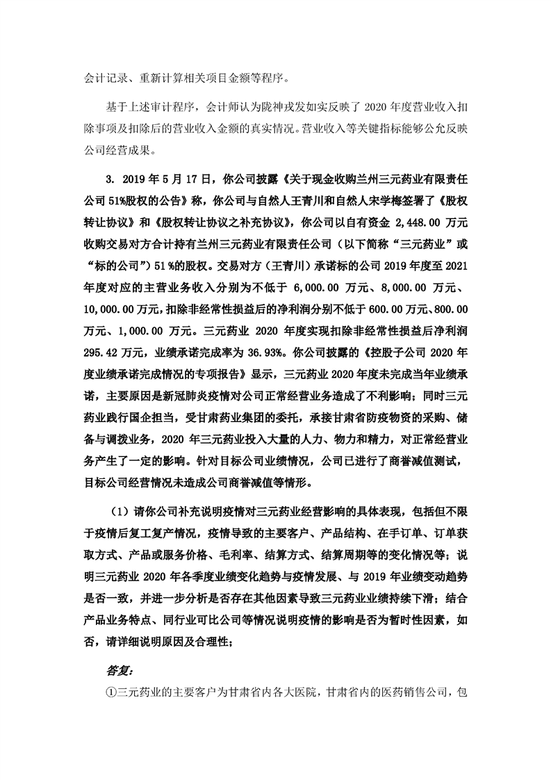 關(guān)于對深圳證券交易所2020年年報(bào)問詢函的答復(fù)公告