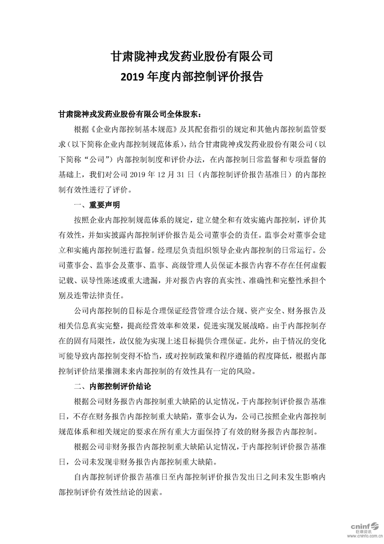 2019年度內(nèi)部控制評價報告