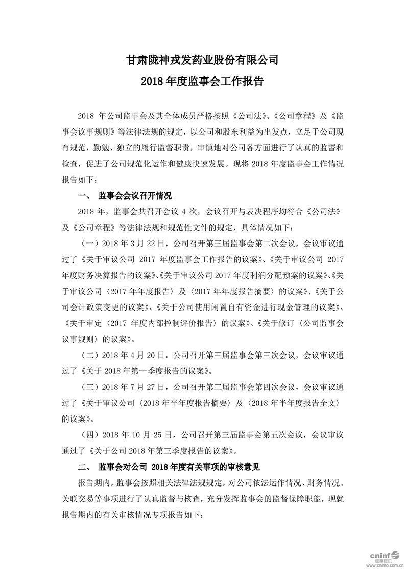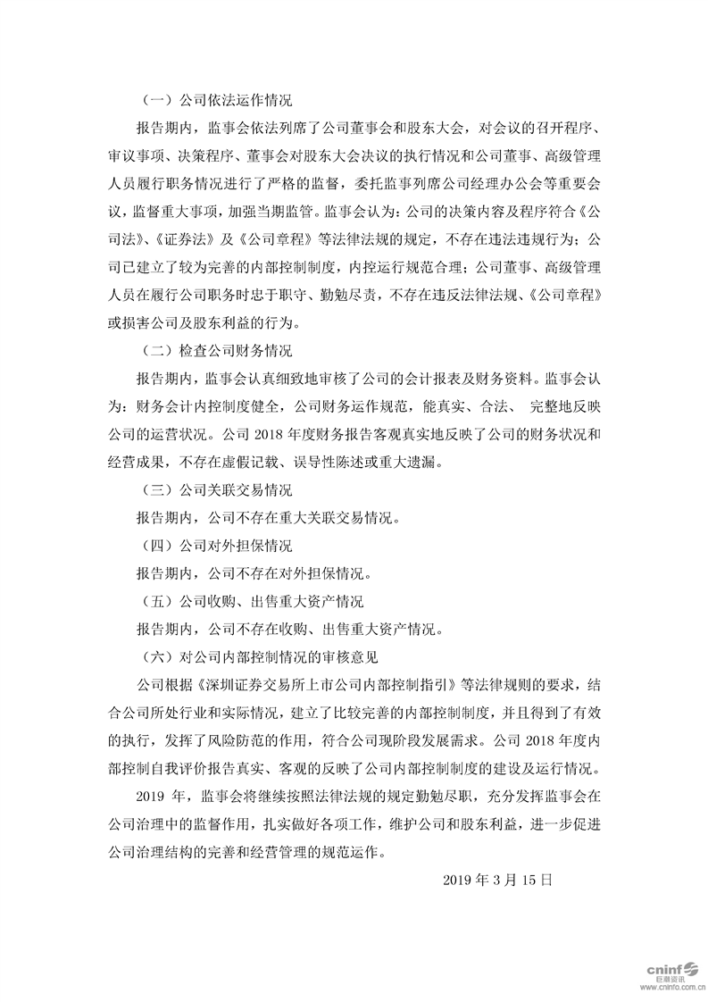 2018 年度監(jiān)事會工作報告