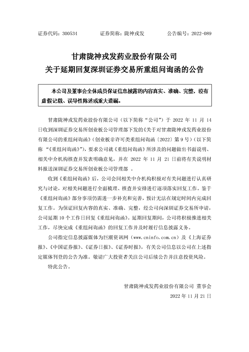 關于延期回復深圳證券交易所重組問詢函的公告