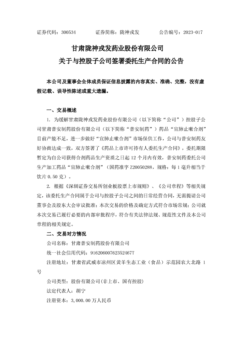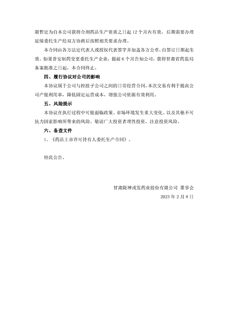 關(guān)于與控股子公司簽署委托生產(chǎn)合同的公告