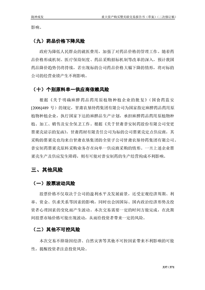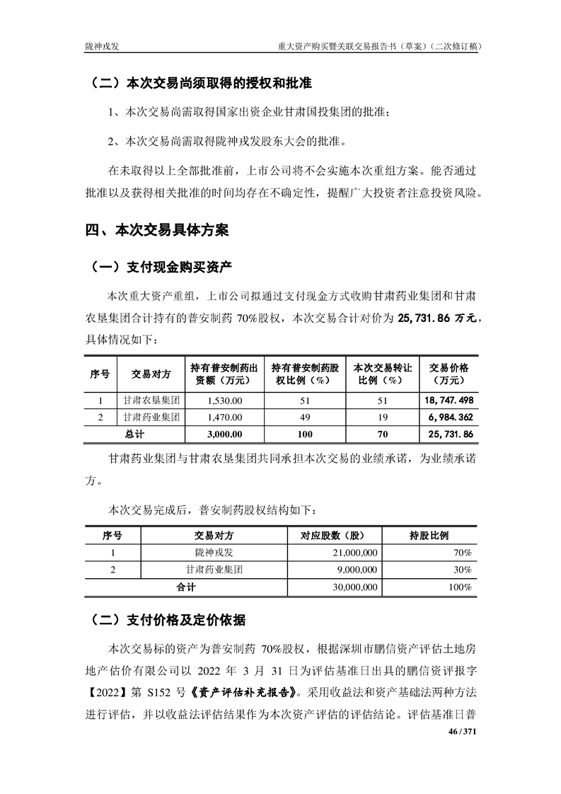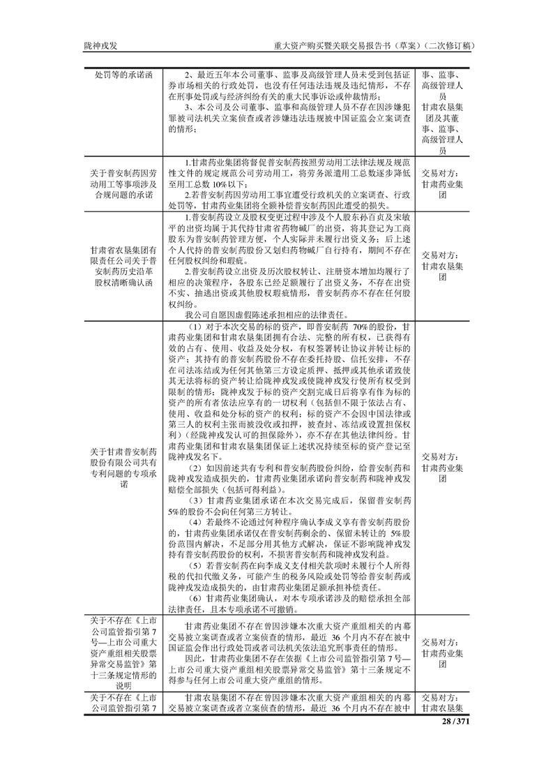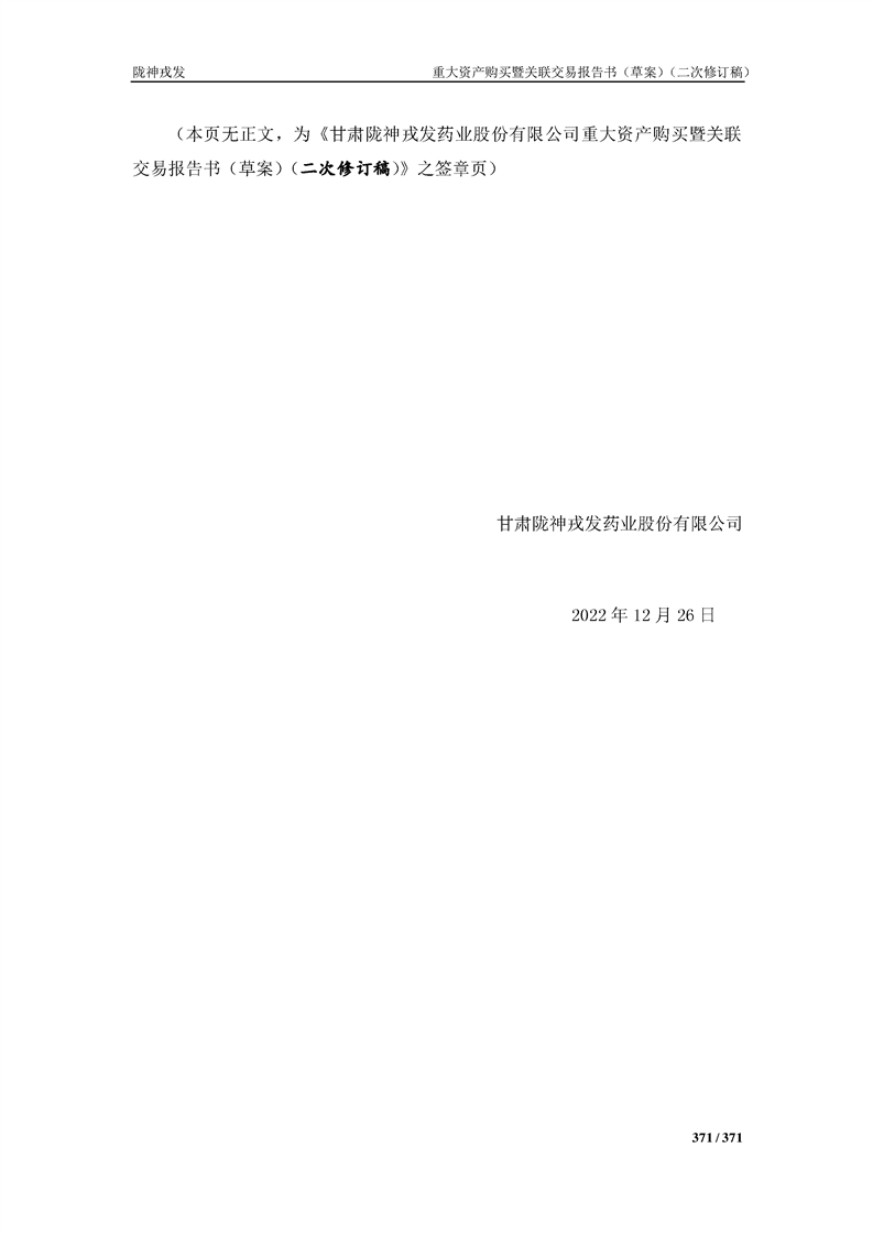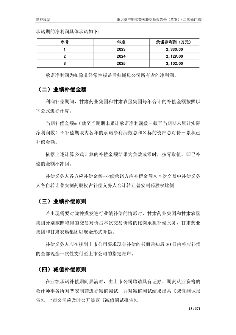 甘肅隴神戎發(fā)藥業(yè)股份有限公司重大資產(chǎn)購買暨關(guān)聯(lián)交易報告書(草案)摘要(二次修訂稿)
