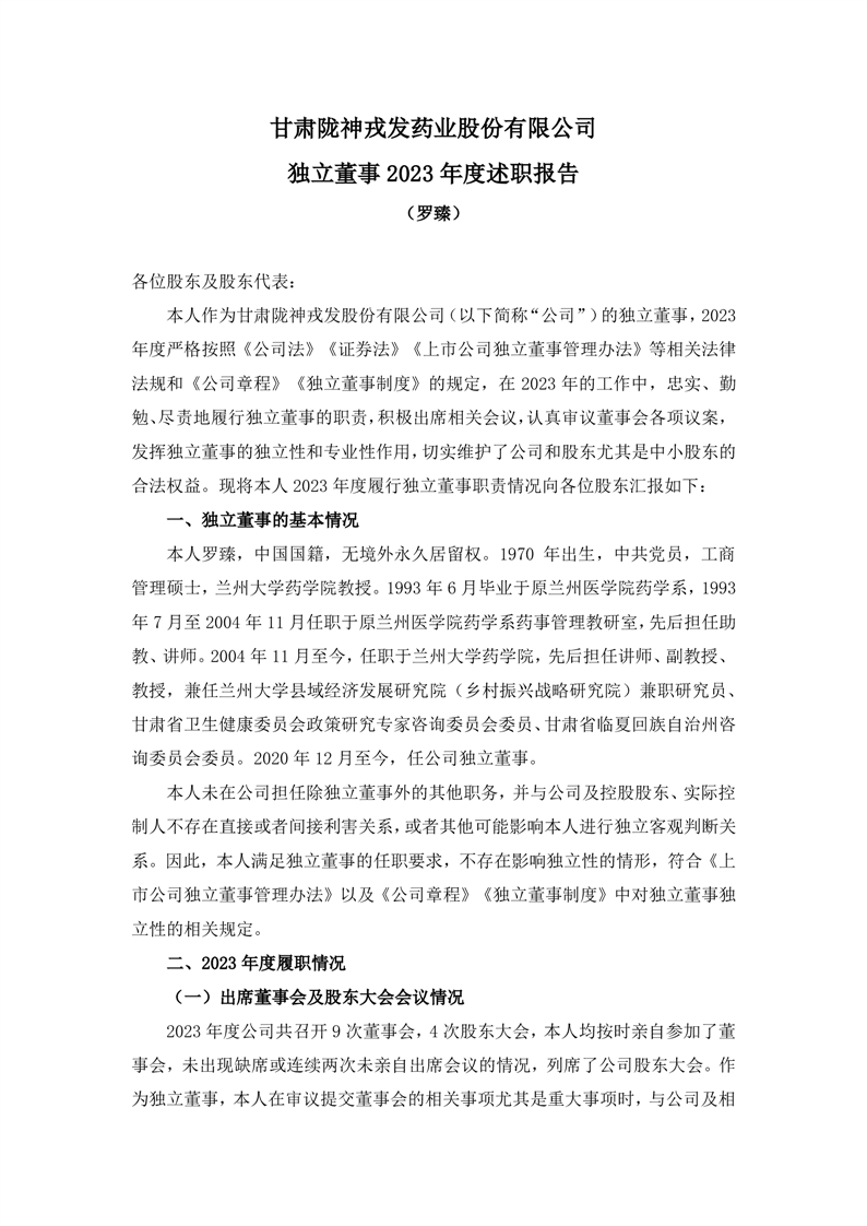2023年度獨(dú)立董事述職報(bào)告(羅臻)