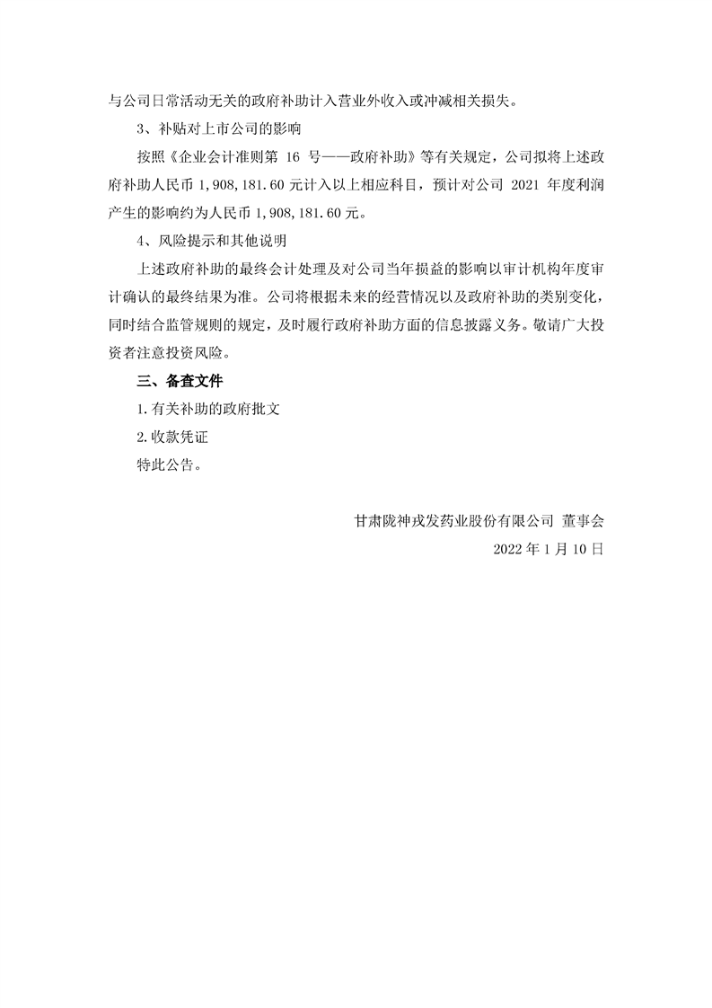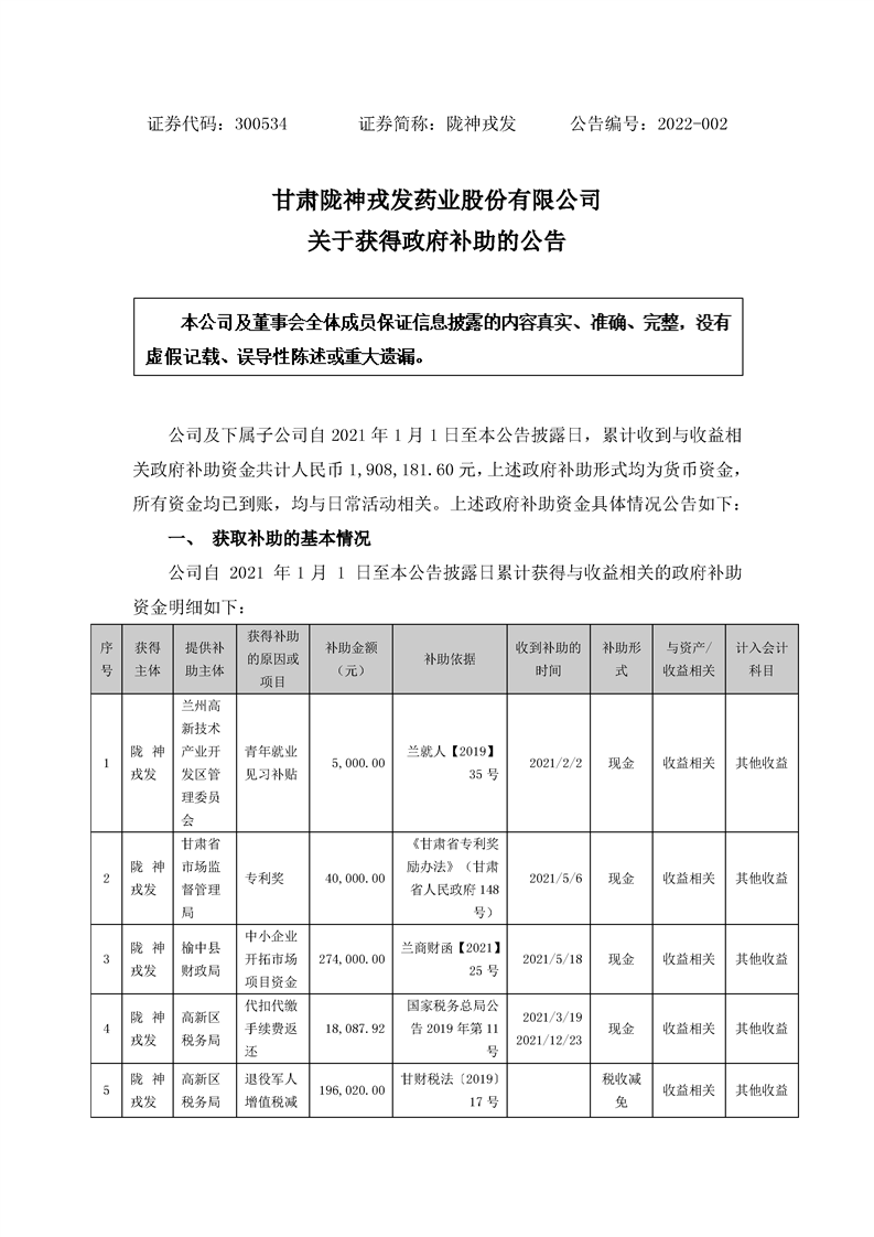 關(guān)于獲得政府補(bǔ)助的公告