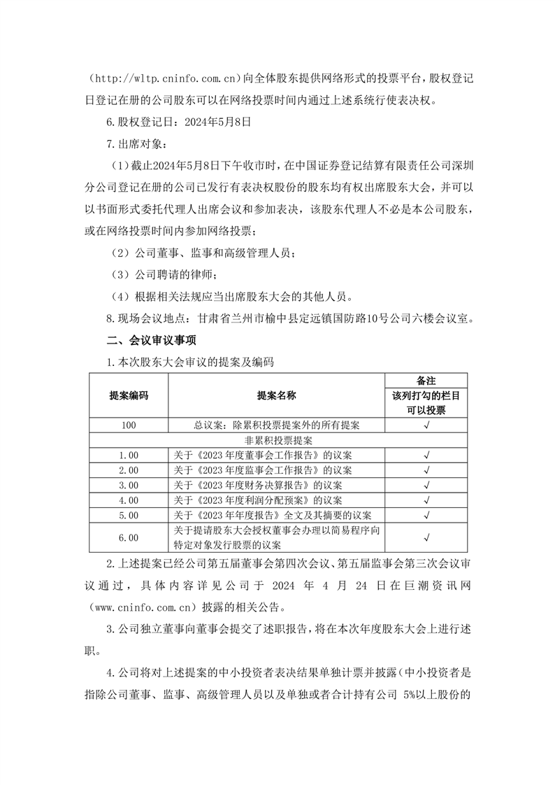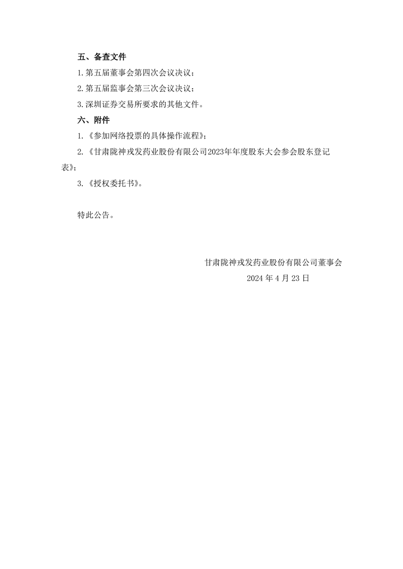 關(guān)于召開2023年年度股東大會(huì)的通知