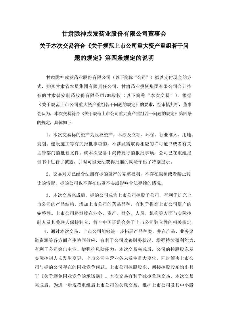 董事會(huì)關(guān)于本次交易符合《關(guān)于規(guī)范上市公司重大資產(chǎn)重組組若干問題的規(guī)定》第四條規(guī)定的說明