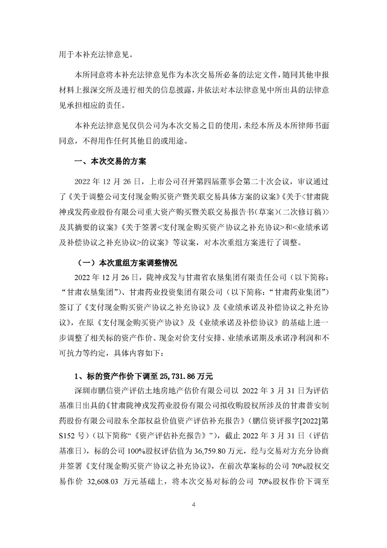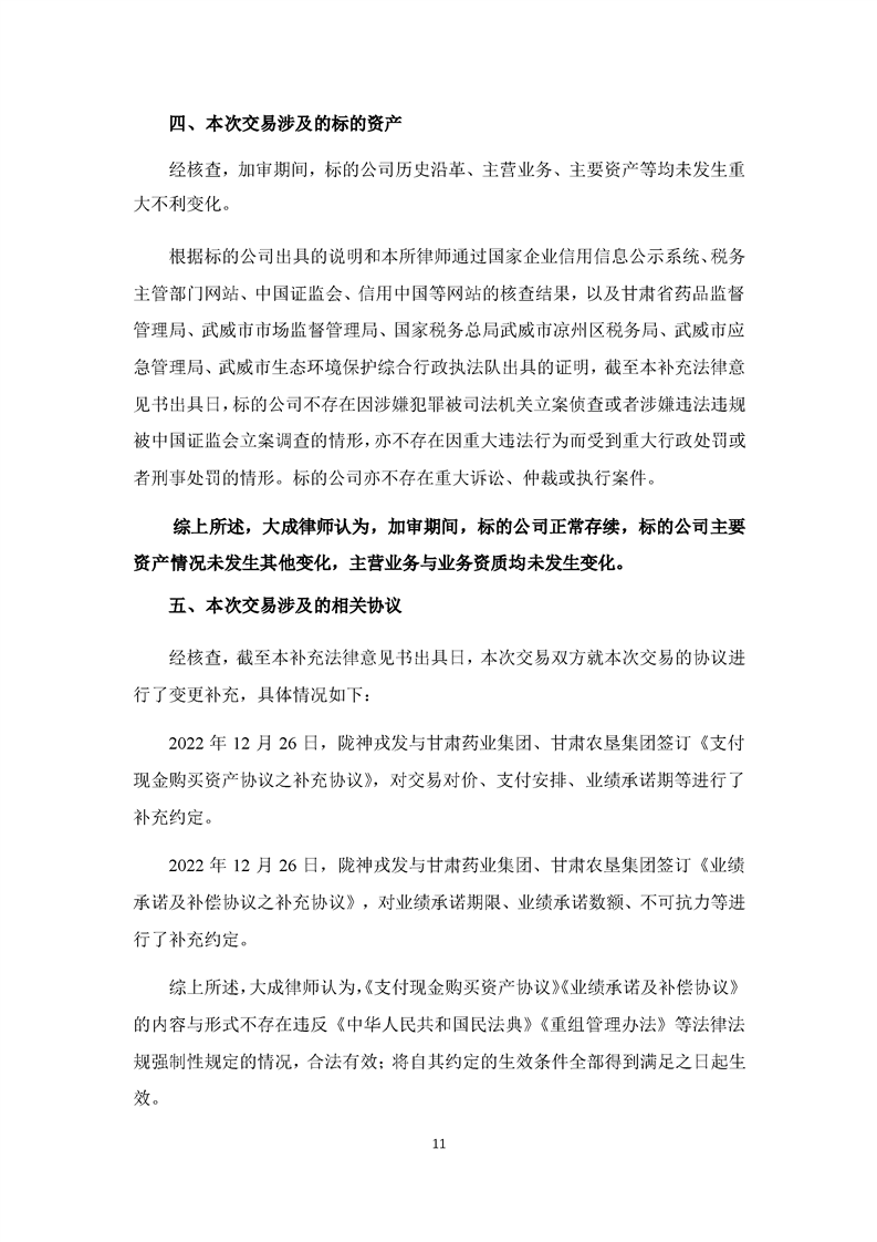 北京大成律師事務(wù)所關(guān)于甘肅隴神戎發(fā)藥業(yè)股份有限公司重大資產(chǎn)購買暨關(guān)聯(lián)交易補充法律意見(四)