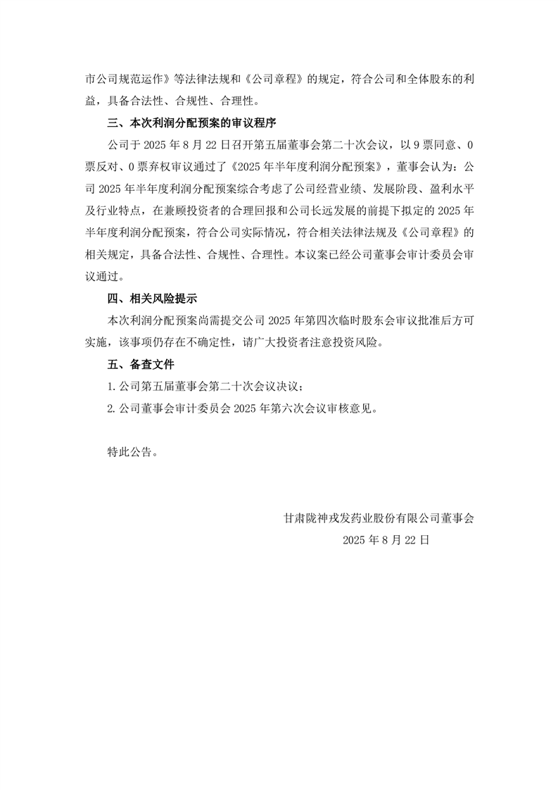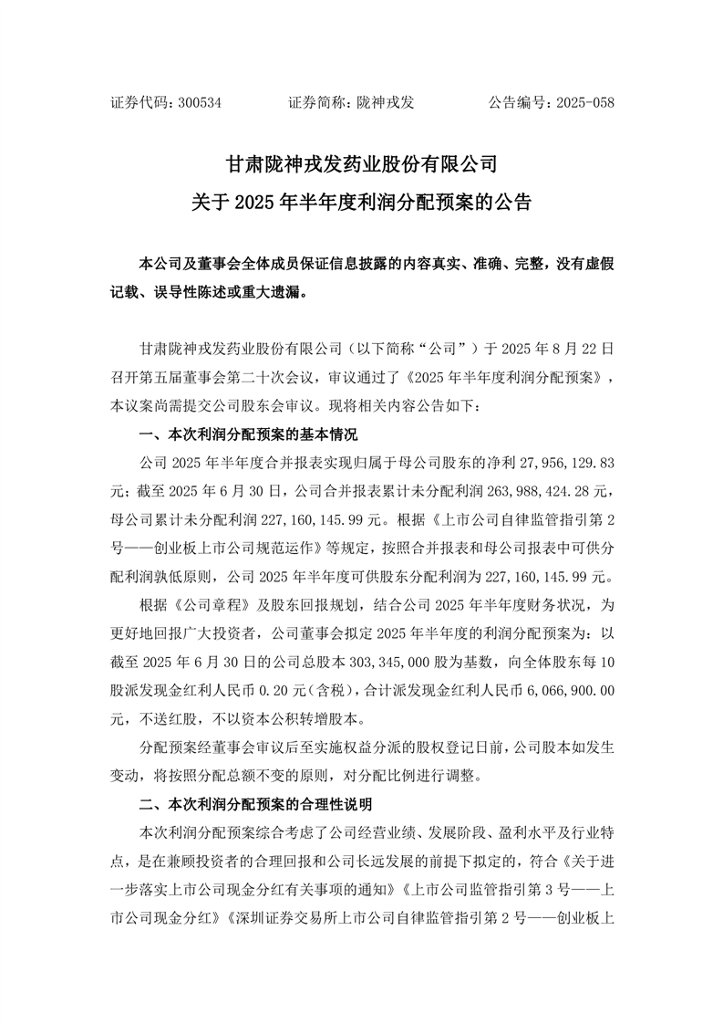 關(guān)于2025年半年度利潤分配預(yù)案的公告
