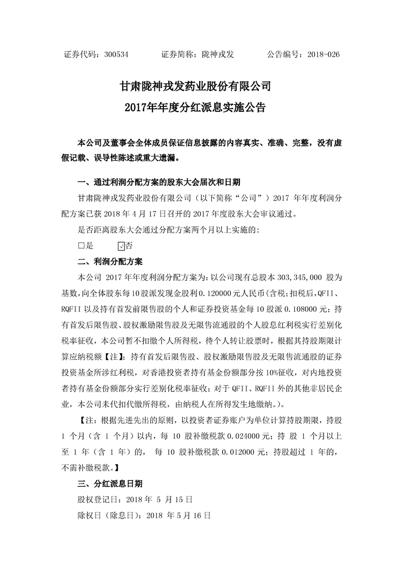 2017年年度分紅派息實(shí)施公告