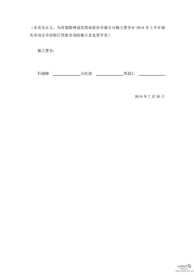 獨(dú)立董事對(duì)2019年半年度相關(guān)事項(xiàng)及申請(qǐng)銀行貸款事項(xiàng)的獨(dú)立意見