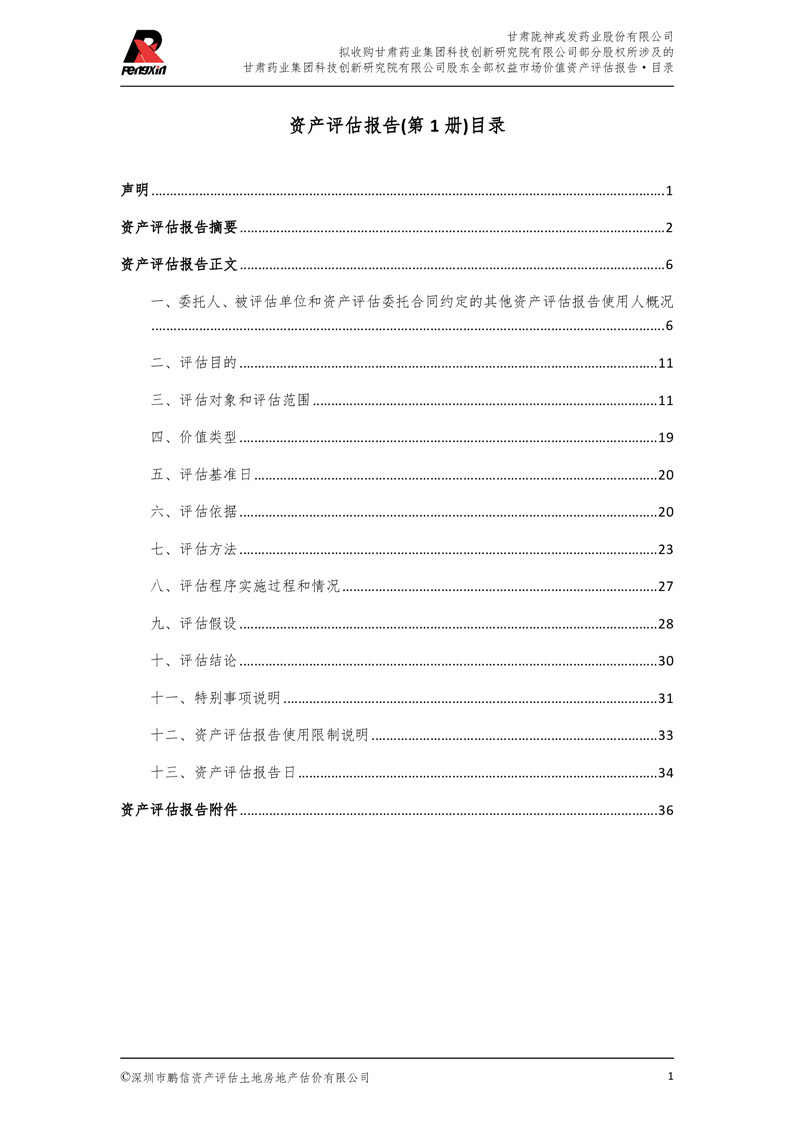 甘肅藥業(yè)集團(tuán)科技創(chuàng)新研究院有限公司股東全部權(quán)益市場(chǎng)價(jià)值資產(chǎn)評(píng)估報(bào)告(鵬信資評(píng)報(bào)字[2025]第S039號(hào))