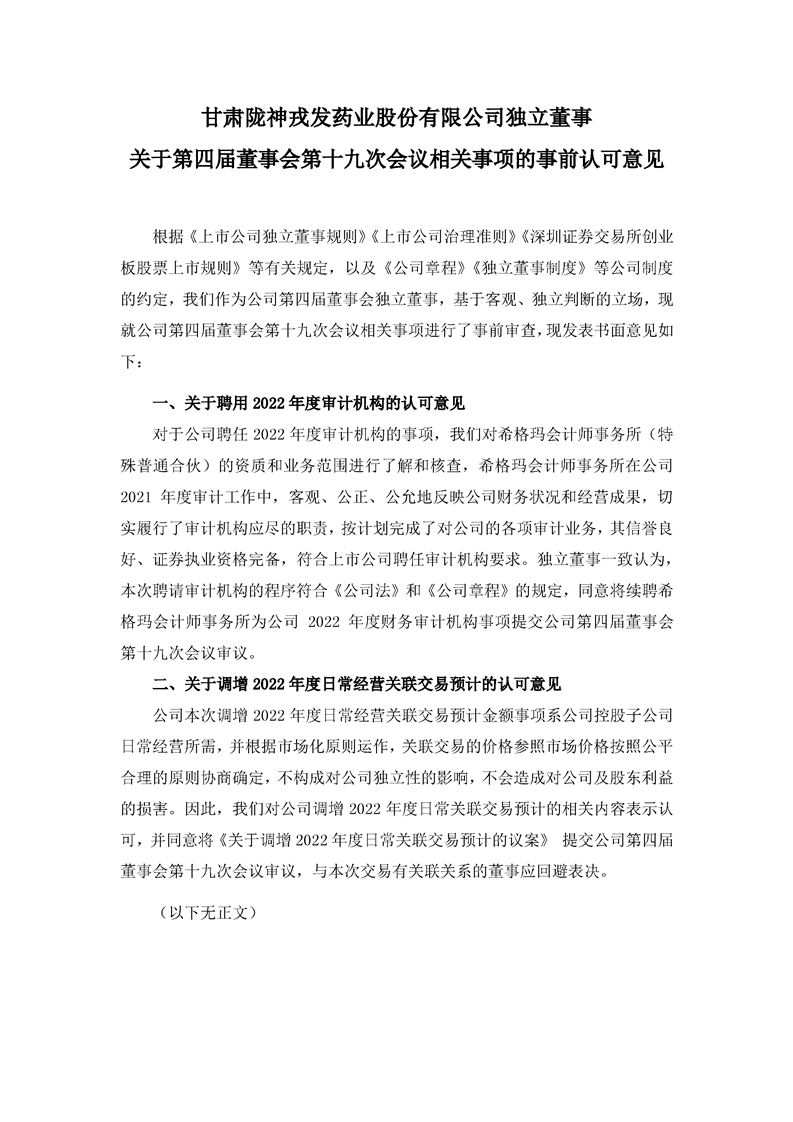 獨(dú)立董事關(guān)于第四屆董事會(huì)第十九次會(huì)議相關(guān)事項(xiàng)的事前認(rèn)可意見(jiàn)