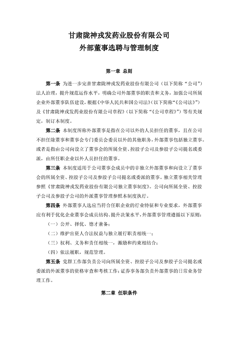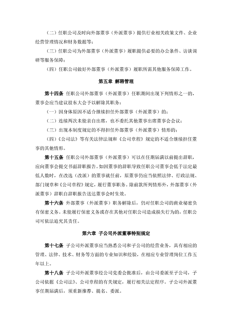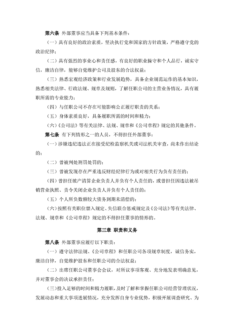 外部董事選聘與管理制度(2022年8月)