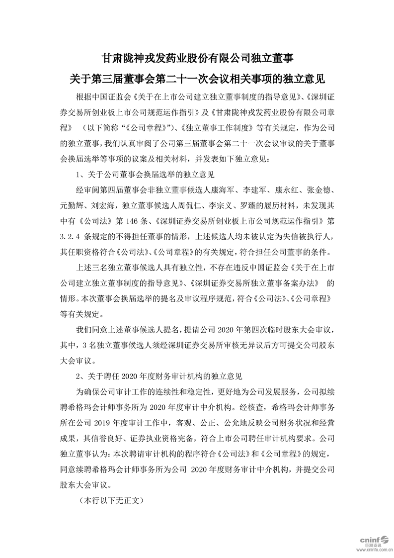 獨(dú)立董事關(guān)于第三屆董事會(huì)第二十一次會(huì)議相關(guān)事項(xiàng)的獨(dú)立意見(jiàn)