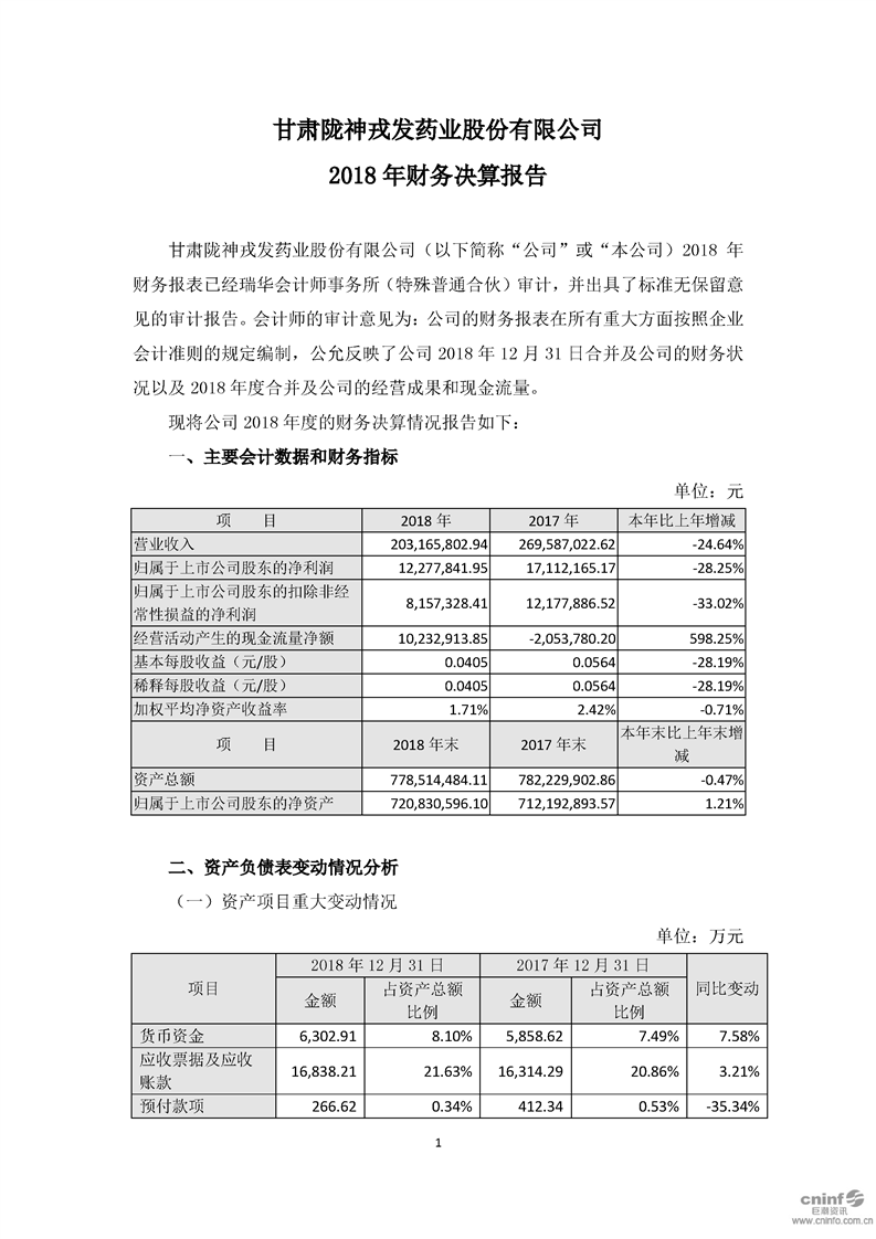 2018 年財務(wù)決算報告