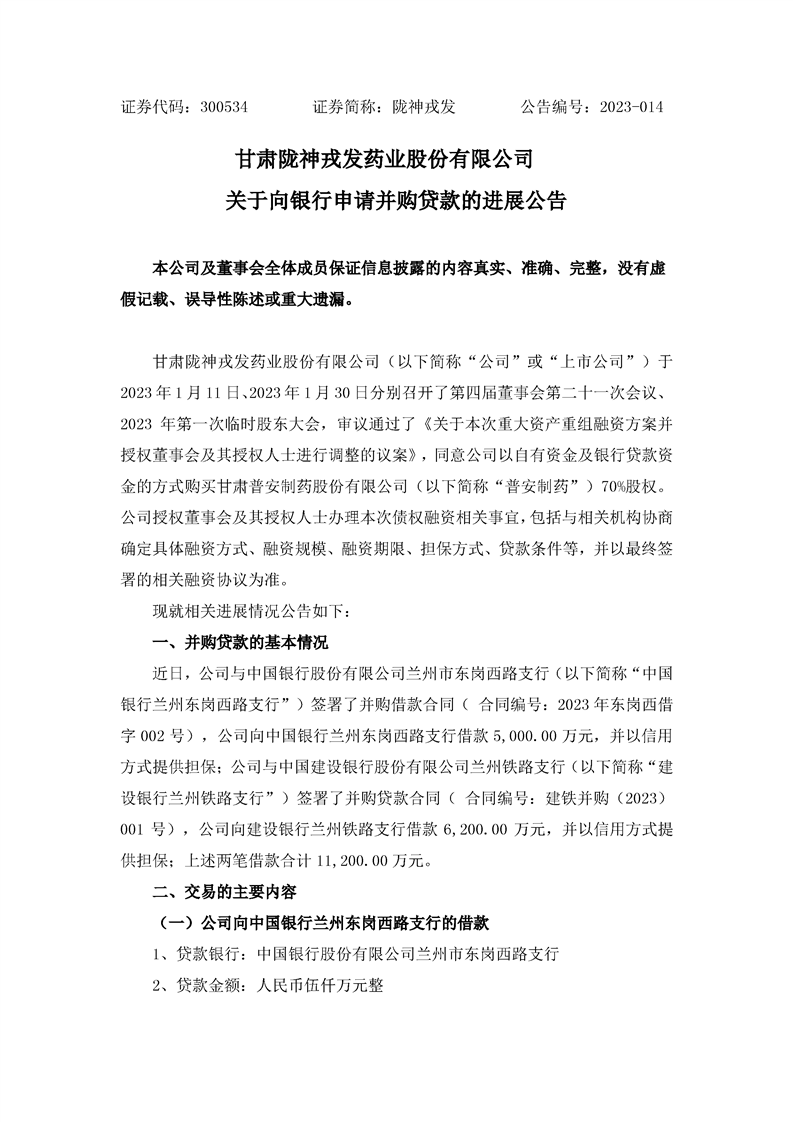關(guān)于向銀行申請并購貸款的進展公告