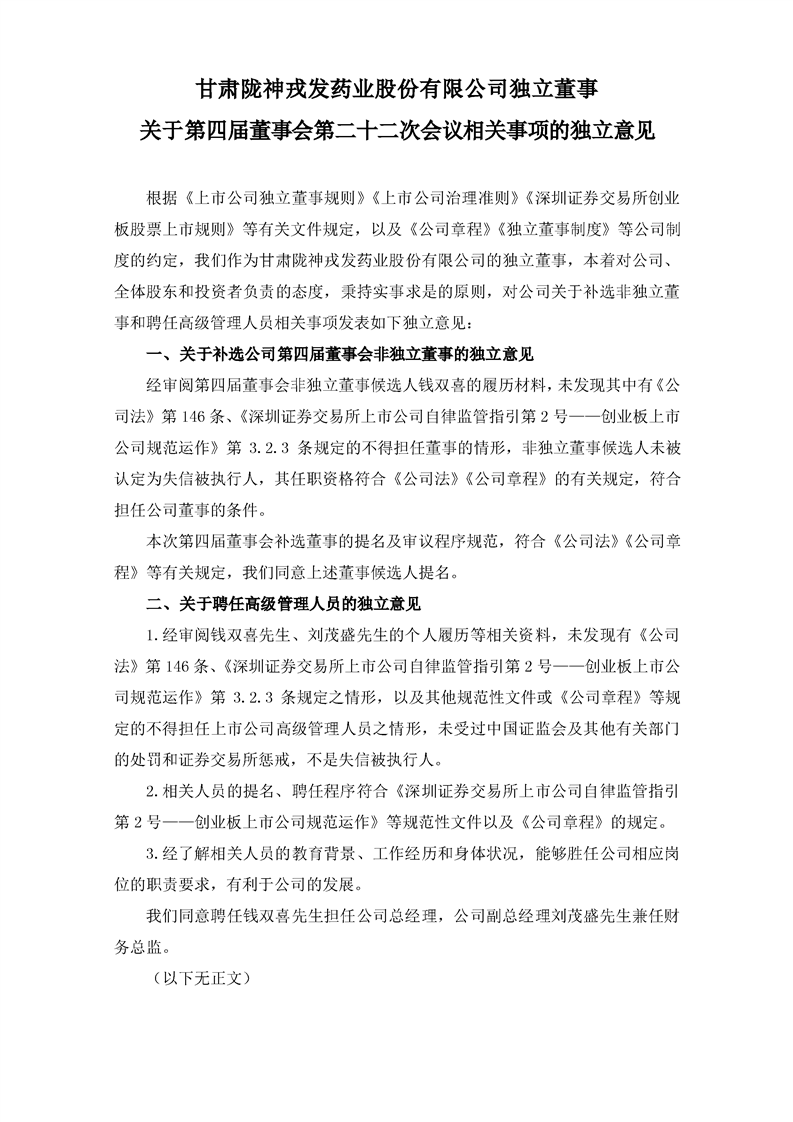 獨立董事關(guān)于第四屆董事會第二十二次會議相關(guān)事項的獨立意見