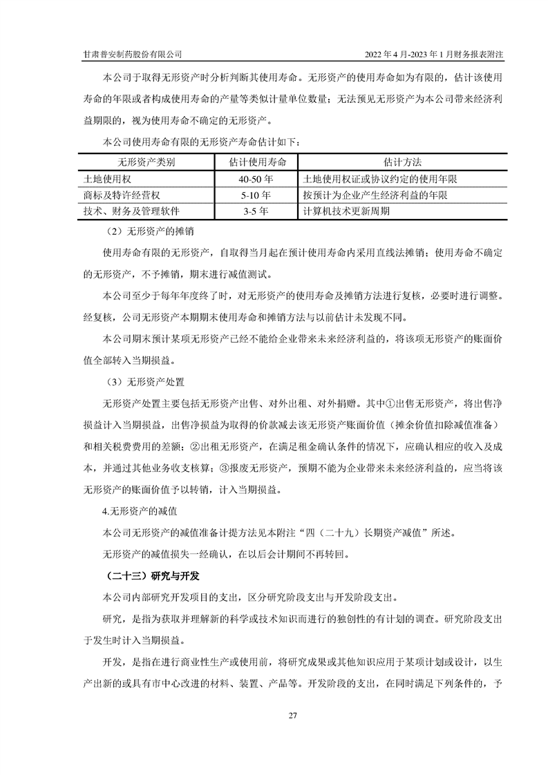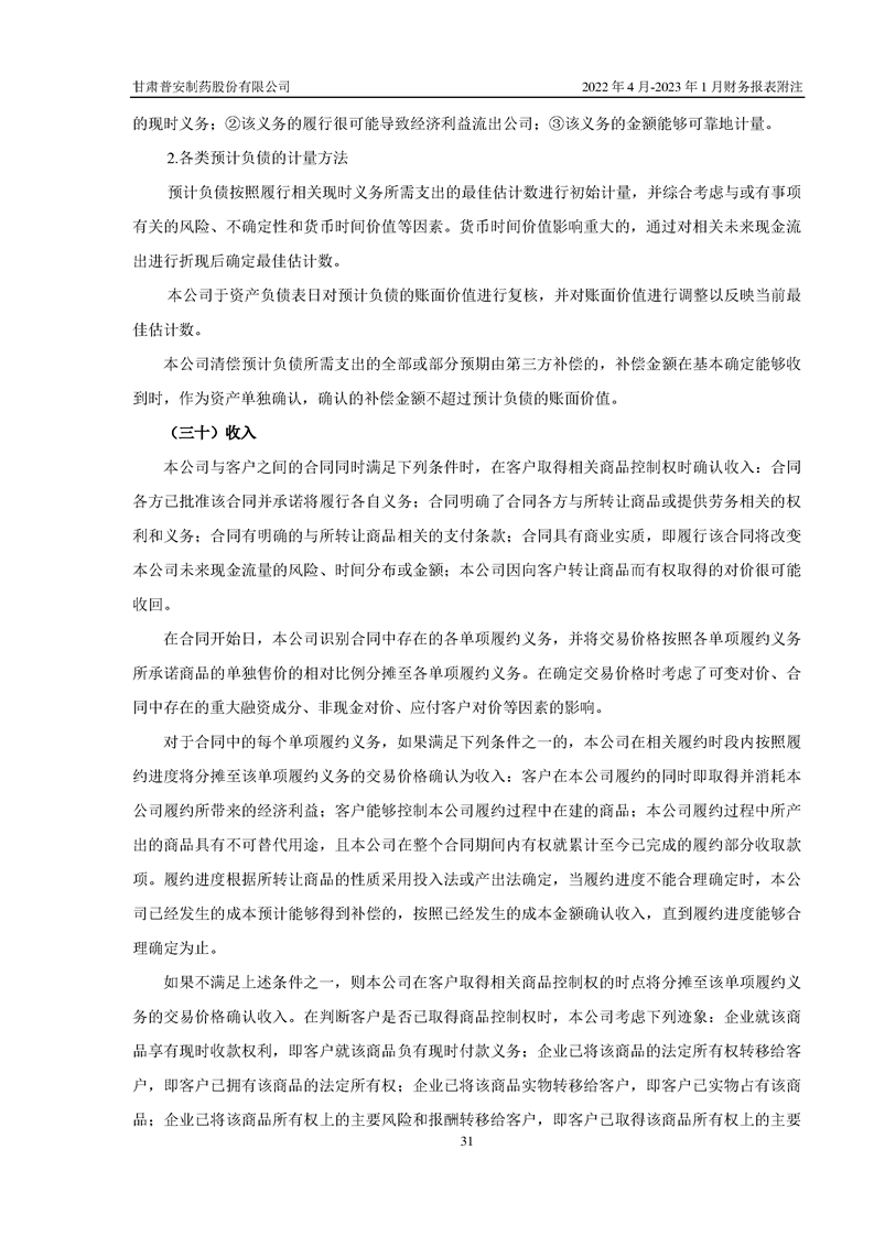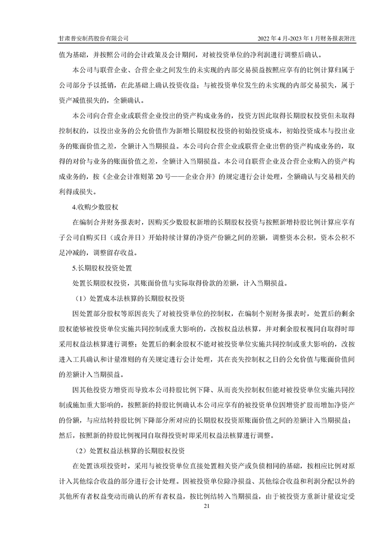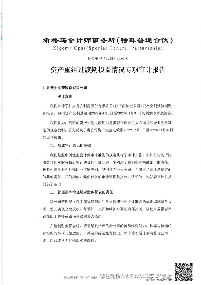 甘肅普安制藥股份有限公司資產(chǎn)重組過渡期損益情況專項審計報告