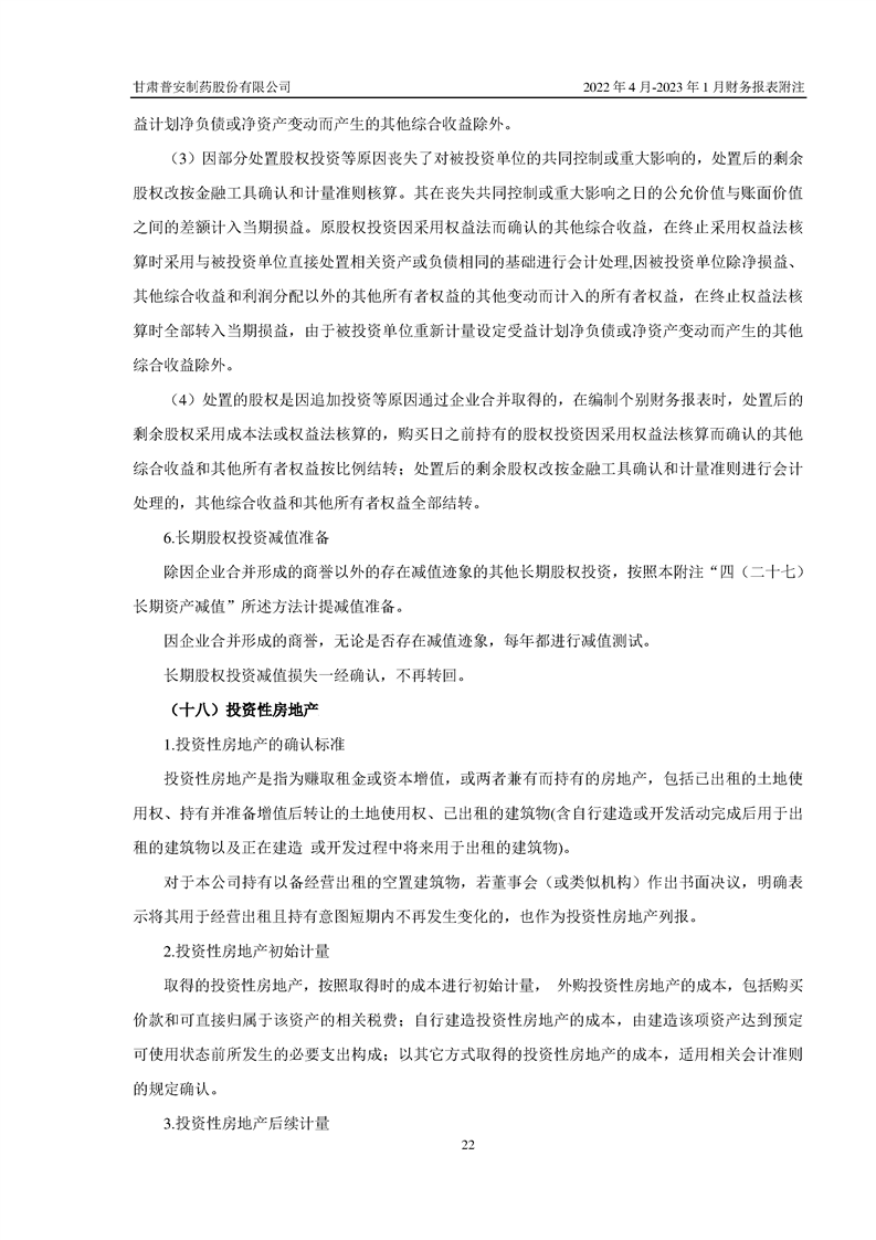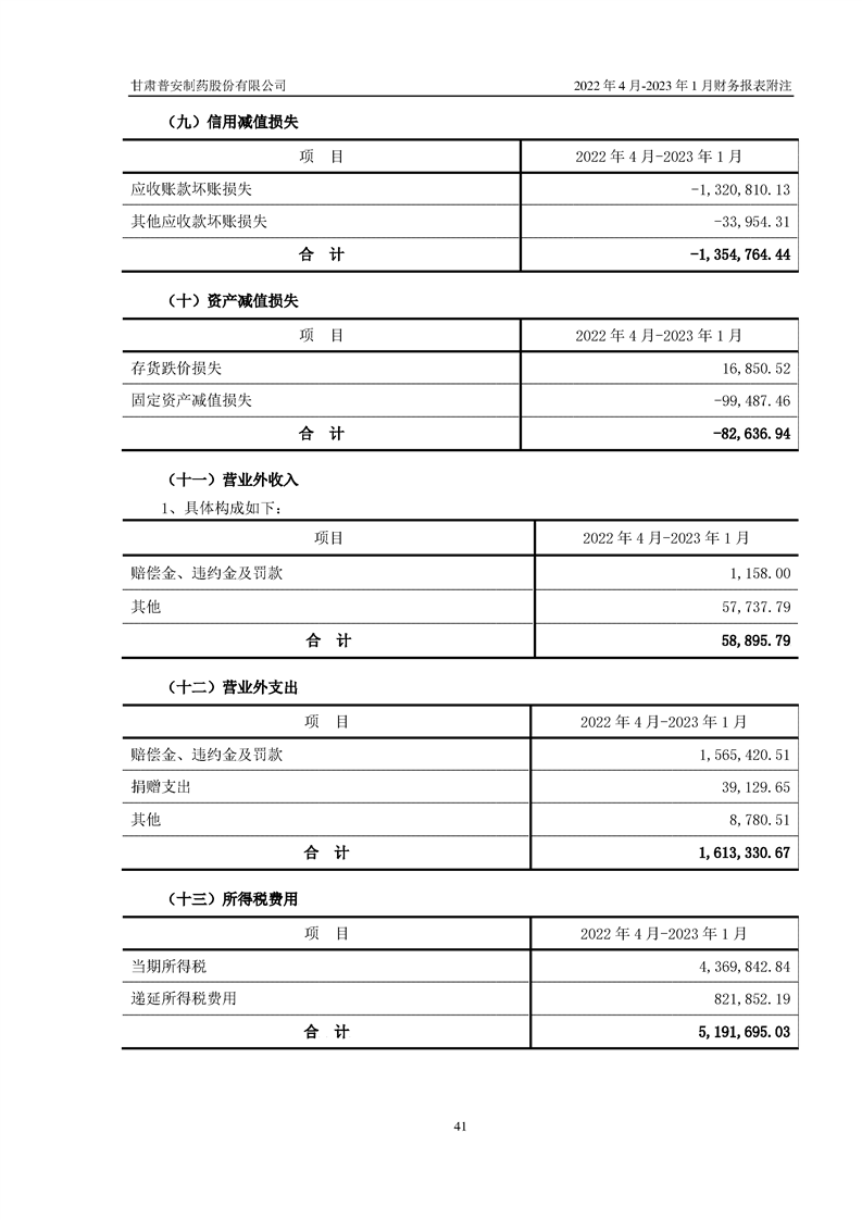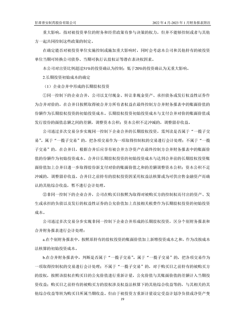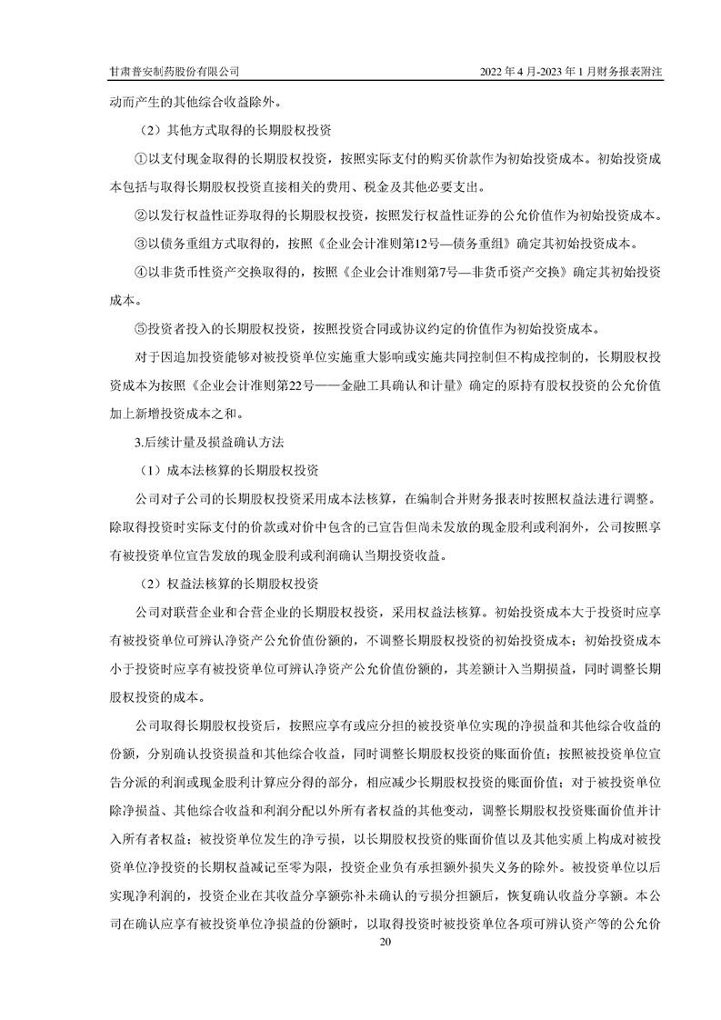 甘肅普安制藥股份有限公司資產(chǎn)重組過渡期損益情況專項審計報告