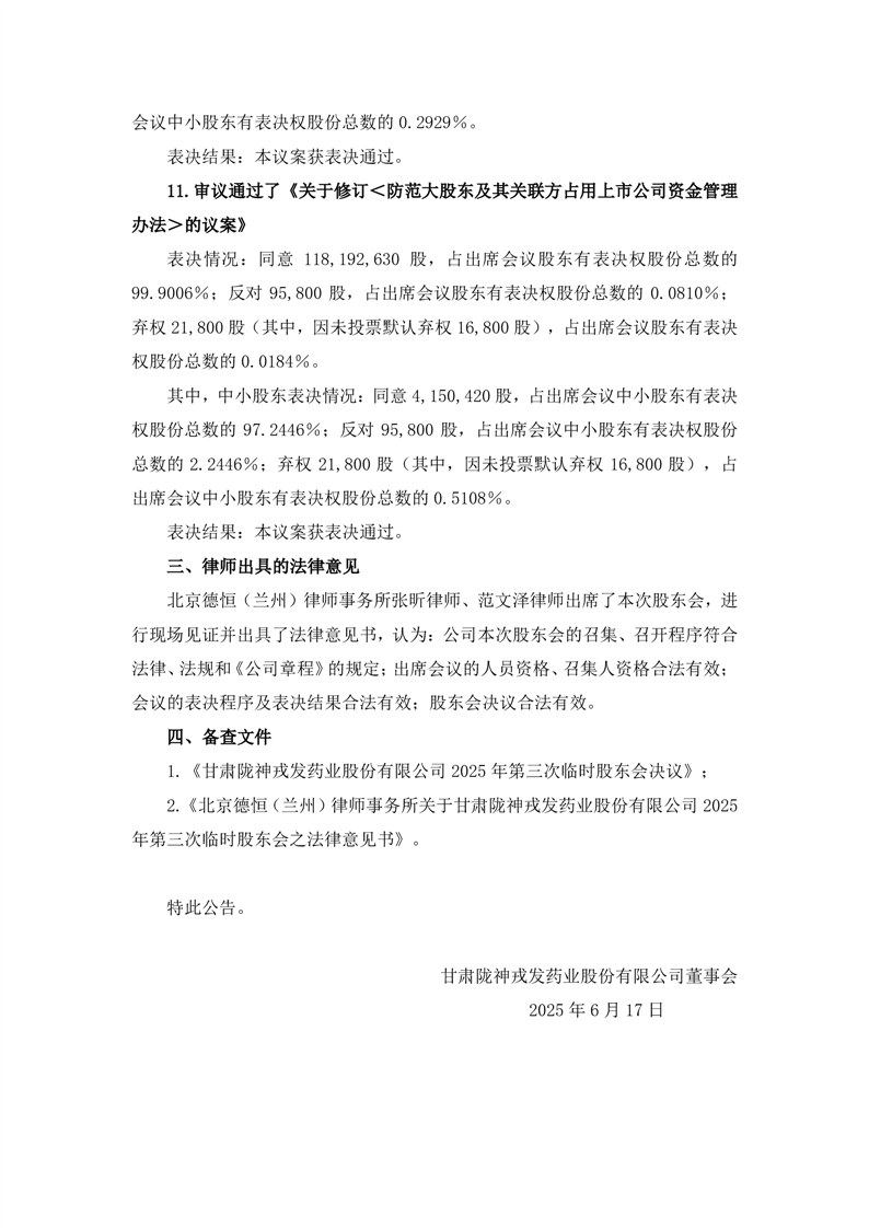 2025年第三次臨時(shí)股東會(huì)決議公告