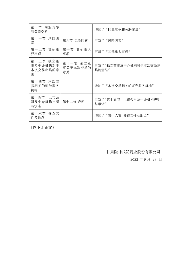 甘肅隴神戎發(fā)藥業(yè)股份有限公司重大資產(chǎn)購買暨關(guān)聯(lián)交易報告書與預(yù)案差異對照表