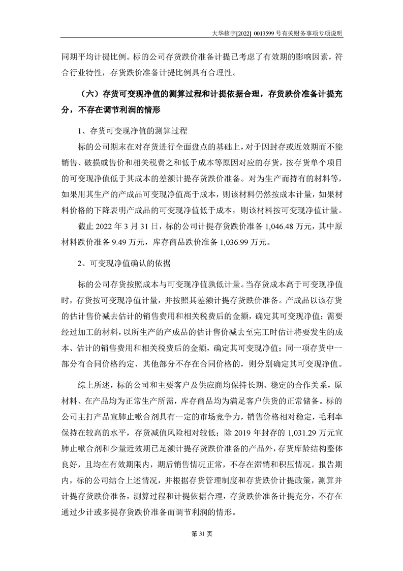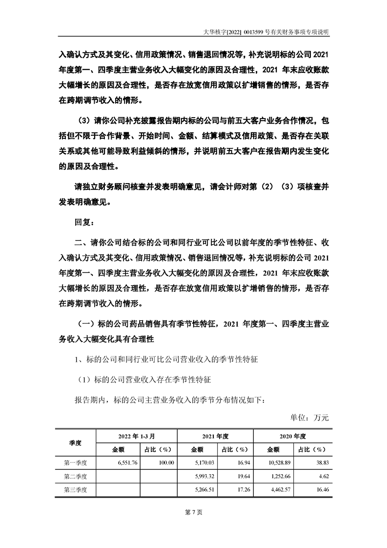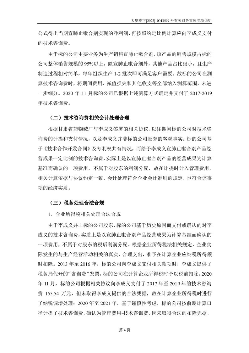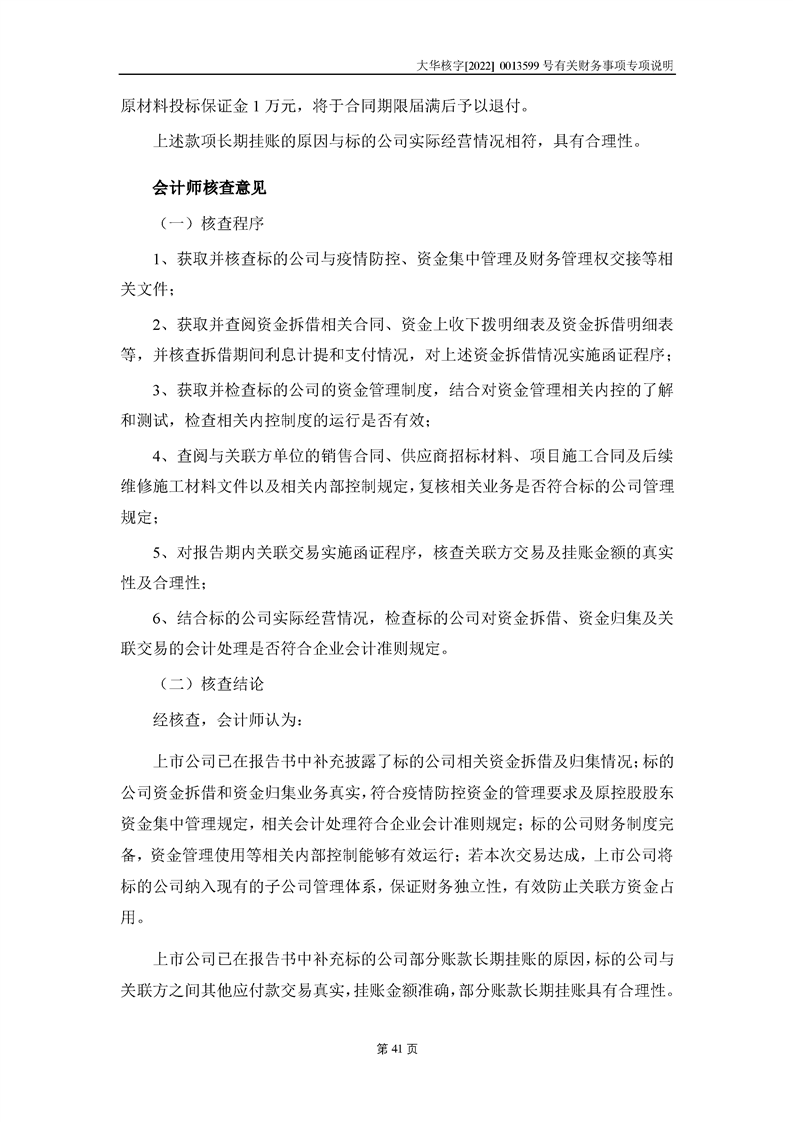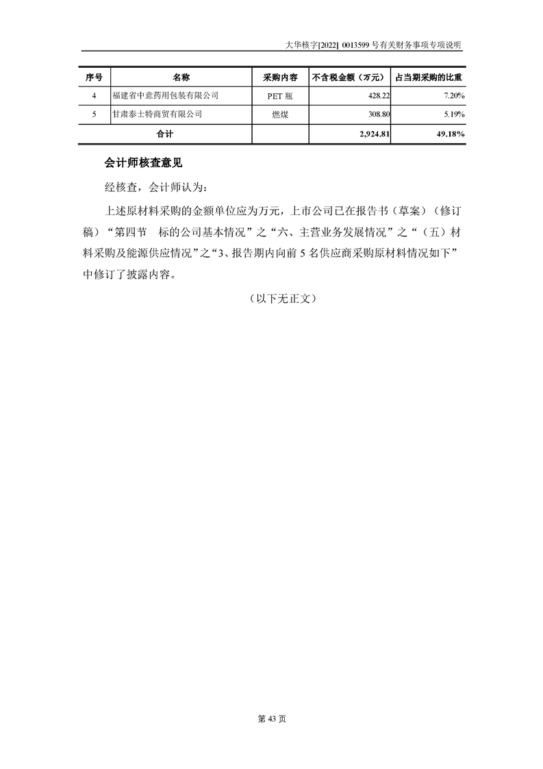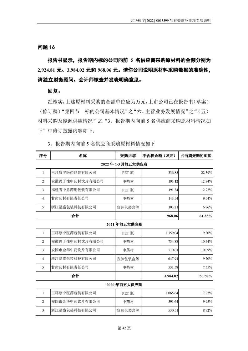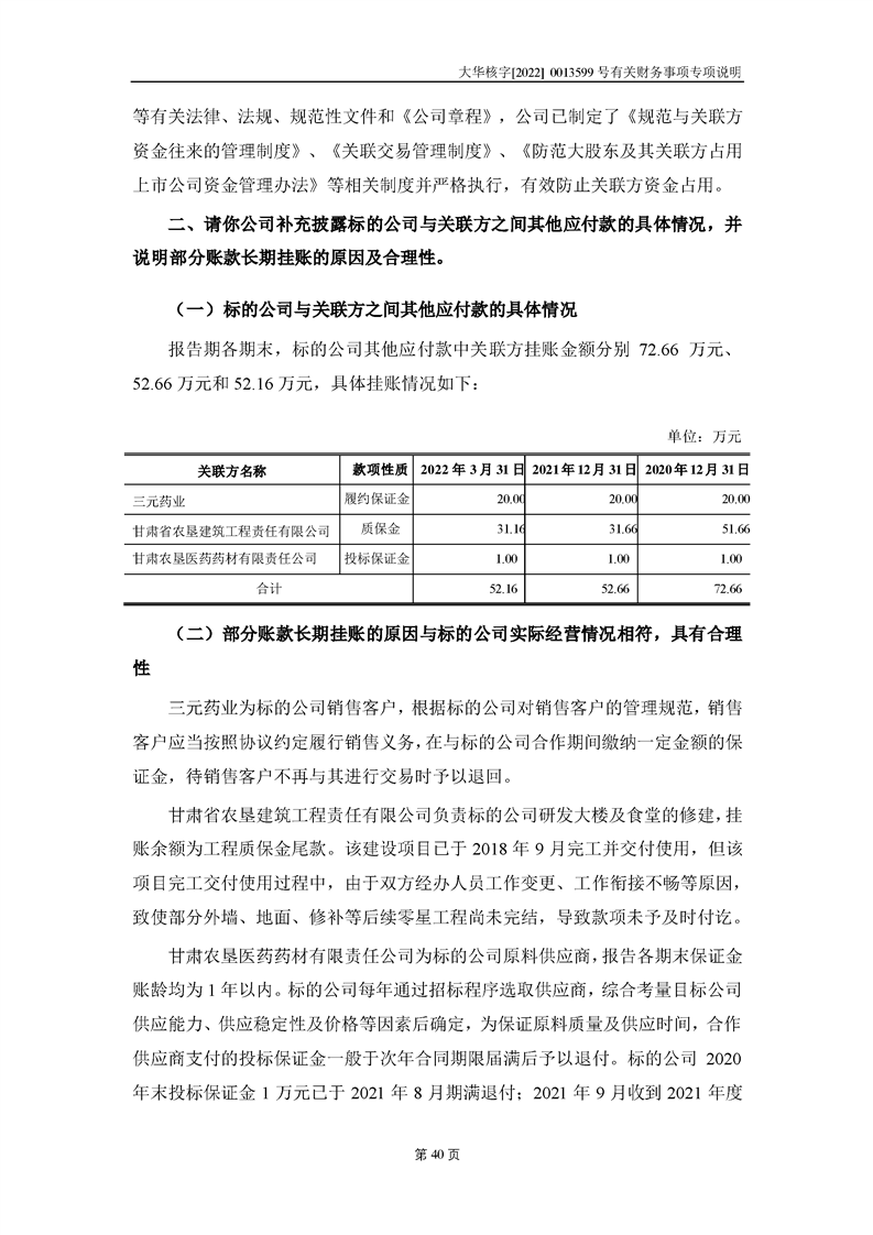關(guān)于深圳證券交易所對甘肅隴神戎發(fā)藥業(yè)股份有限公司的重組問詢函中有關(guān)財(cái)務(wù)事項(xiàng)的專項(xiàng)說明大華核字[2022]0013599號(hào)
