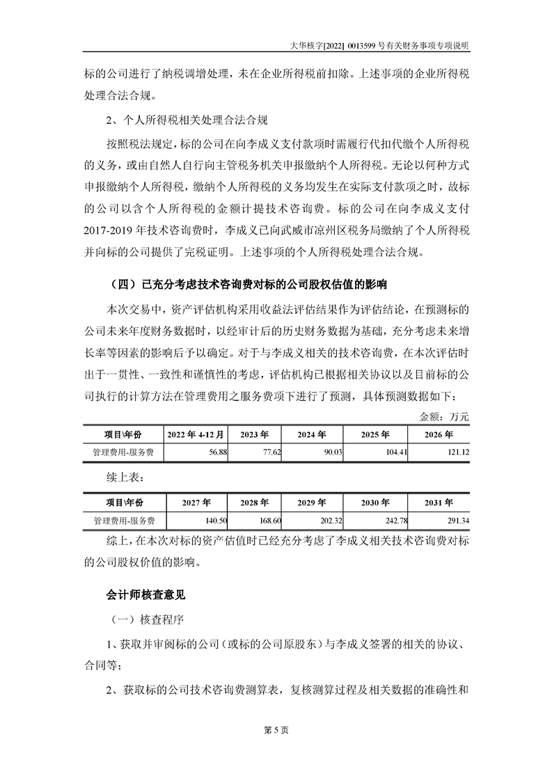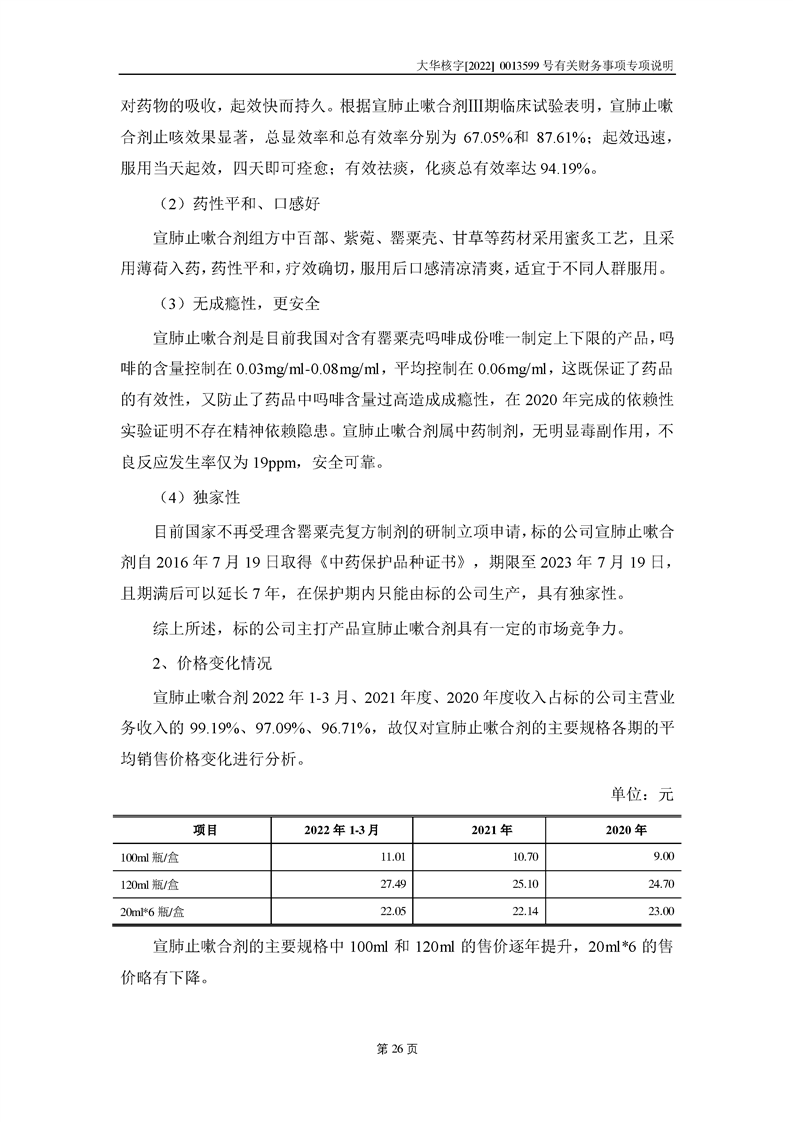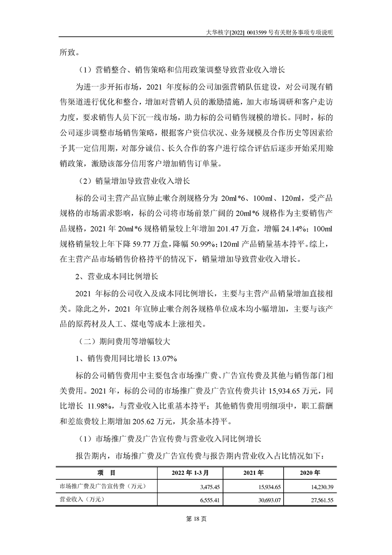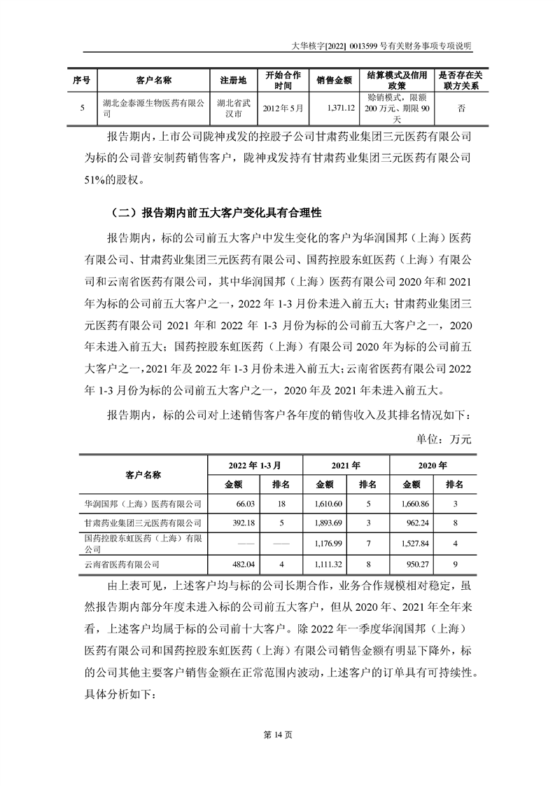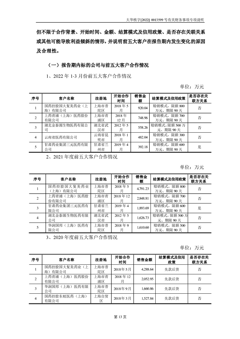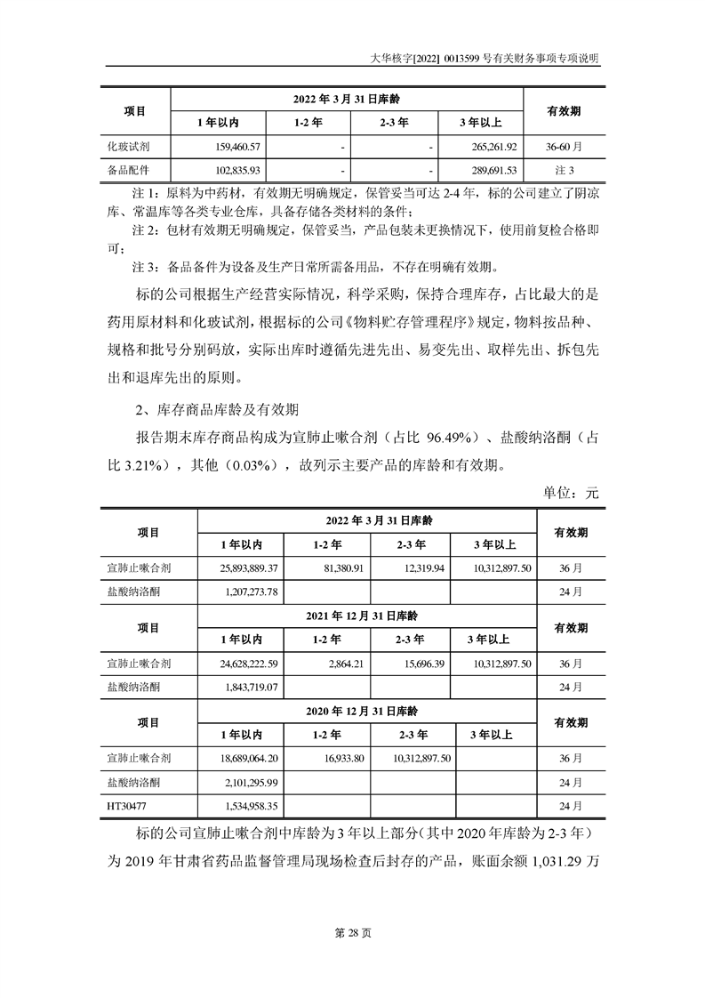 關(guān)于深圳證券交易所對甘肅隴神戎發(fā)藥業(yè)股份有限公司的重組問詢函中有關(guān)財(cái)務(wù)事項(xiàng)的專項(xiàng)說明大華核字[2022]0013599號(hào)