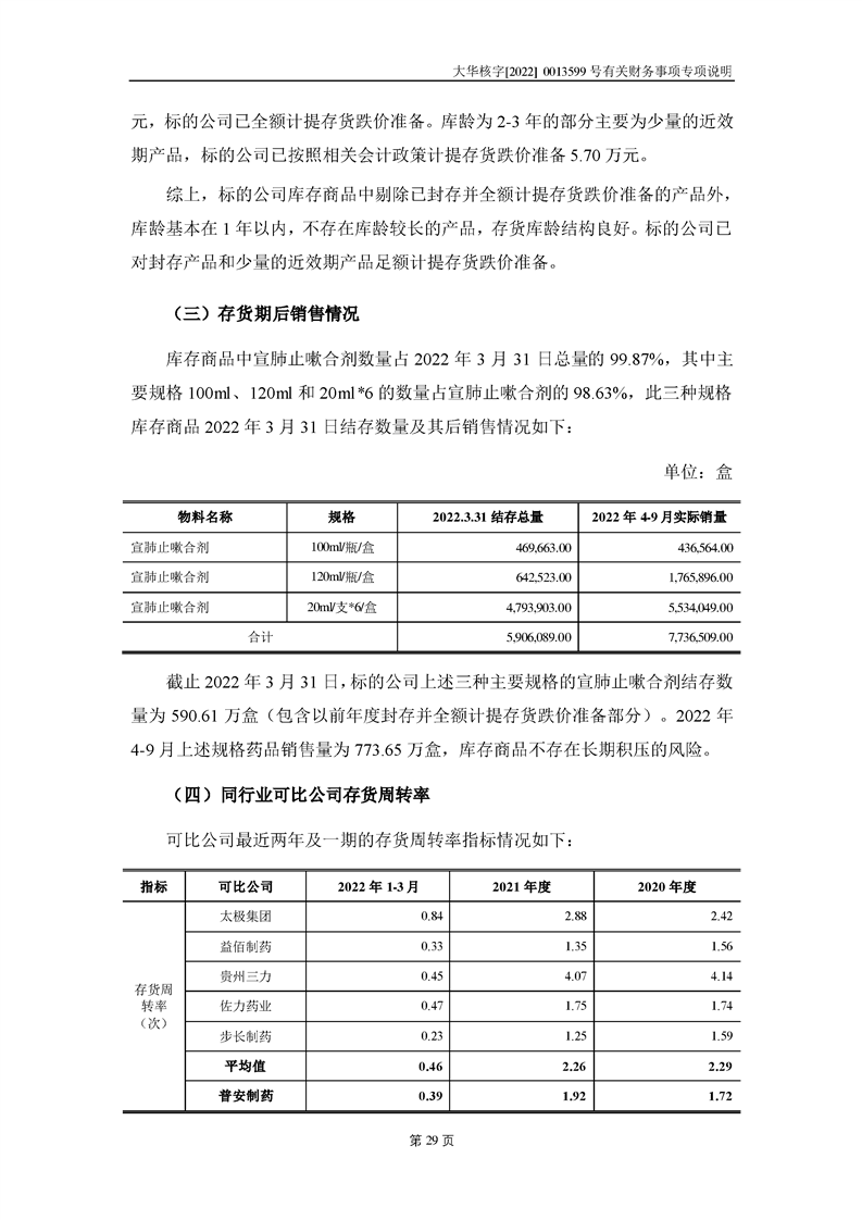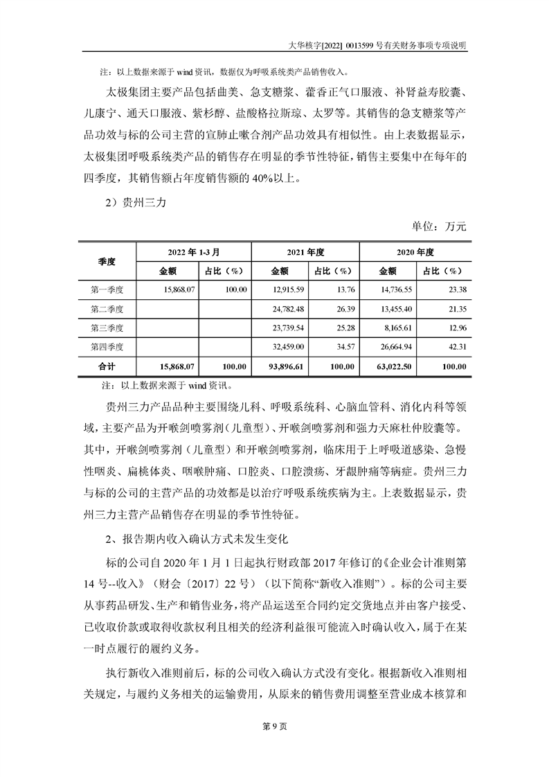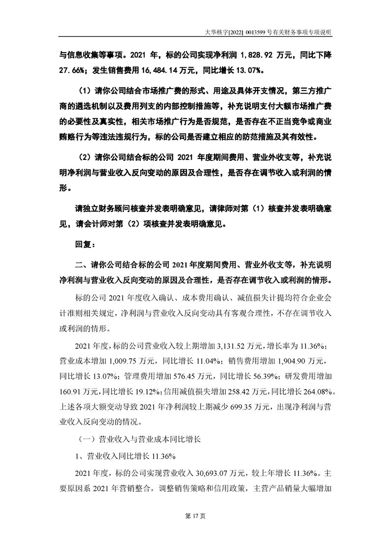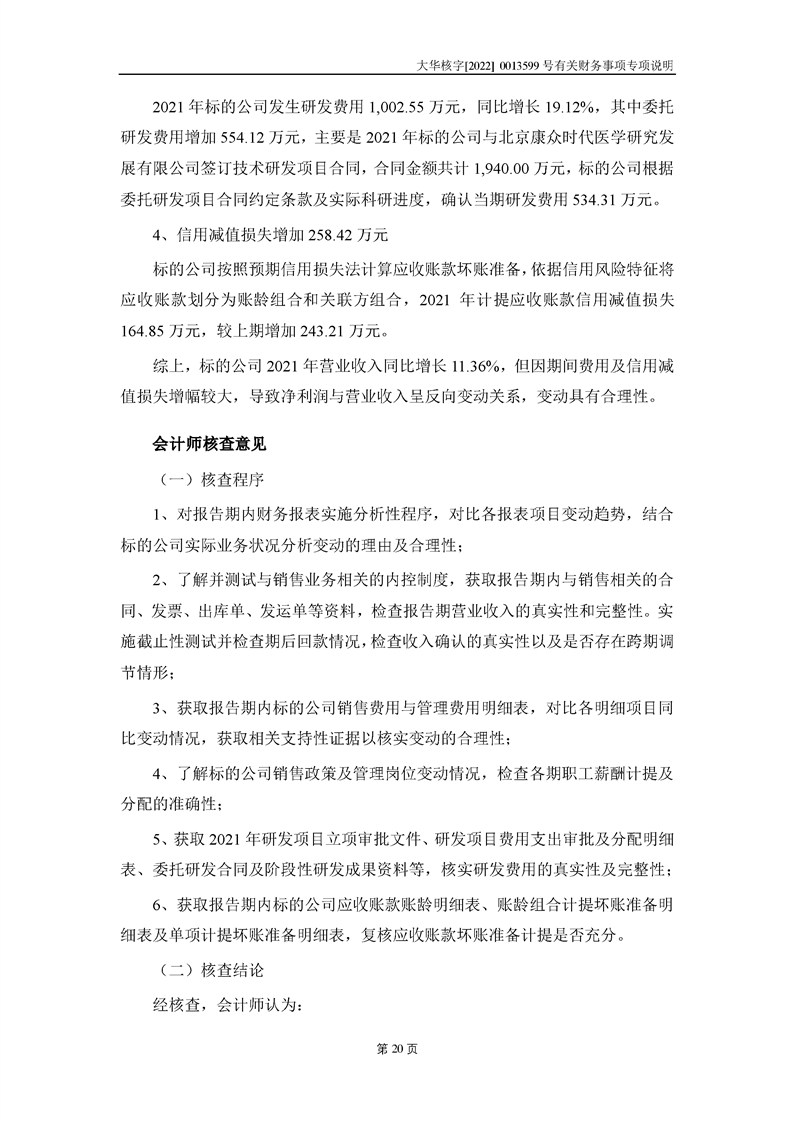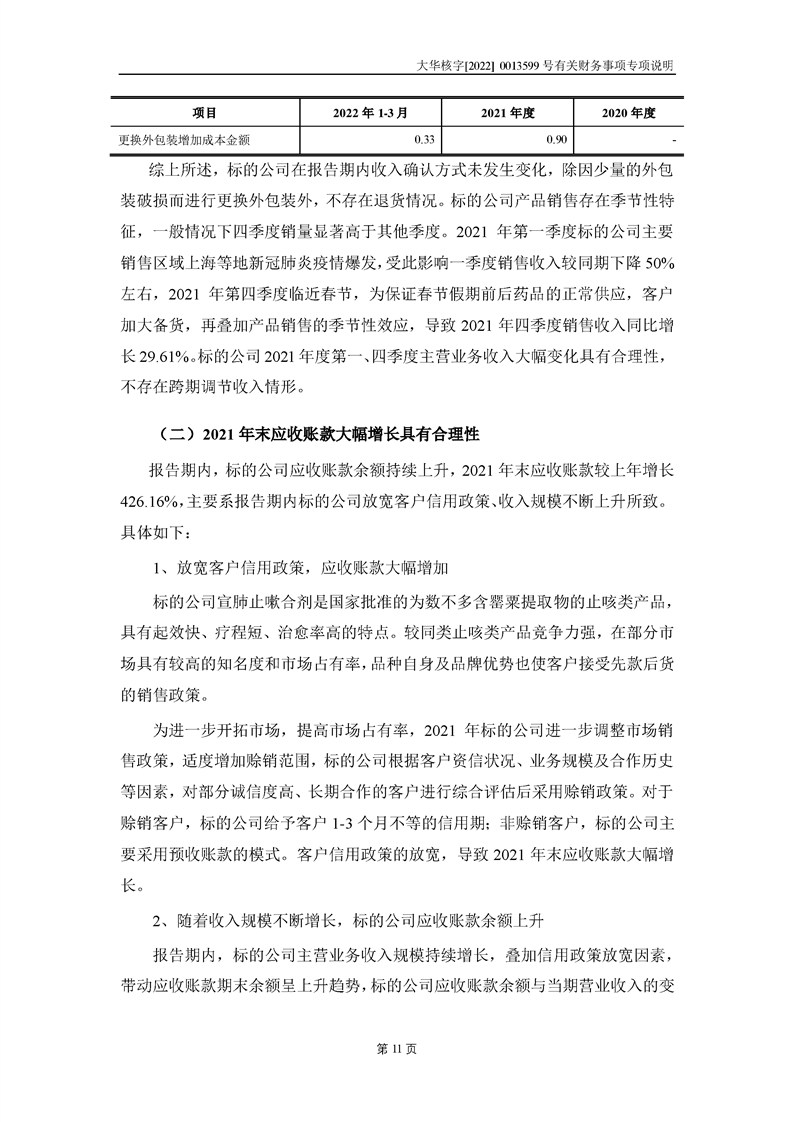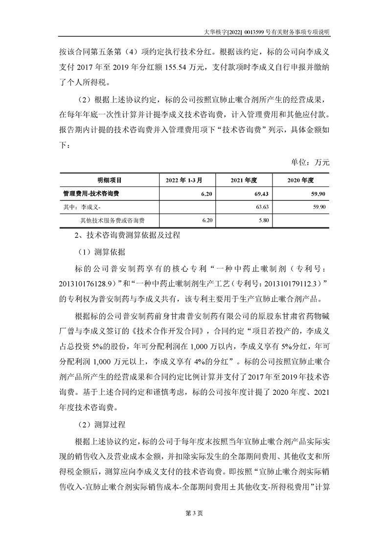 關(guān)于深圳證券交易所對甘肅隴神戎發(fā)藥業(yè)股份有限公司的重組問詢函中有關(guān)財(cái)務(wù)事項(xiàng)的專項(xiàng)說明大華核字[2022]0013599號(hào)