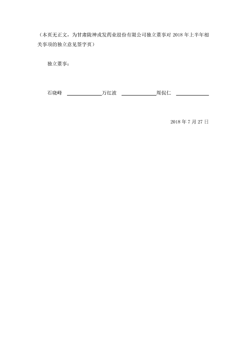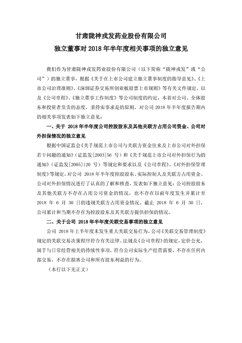 獨立董事對 2018 年半年度相關事項的獨立意見
