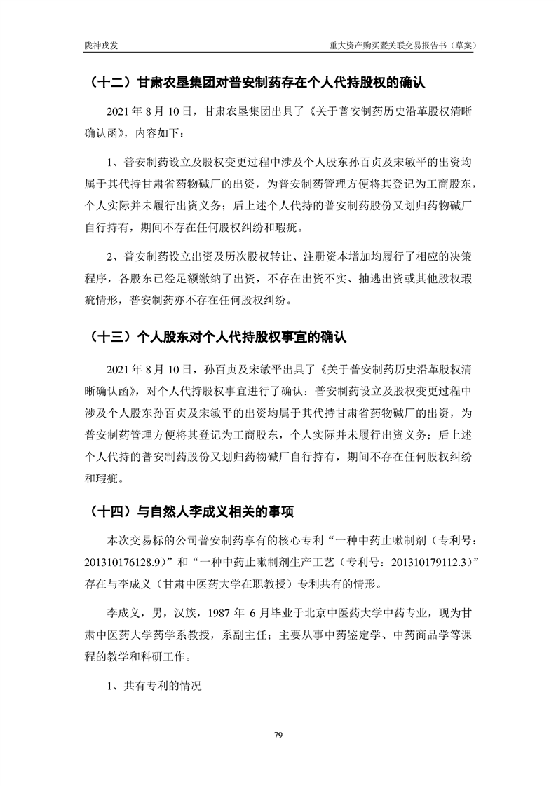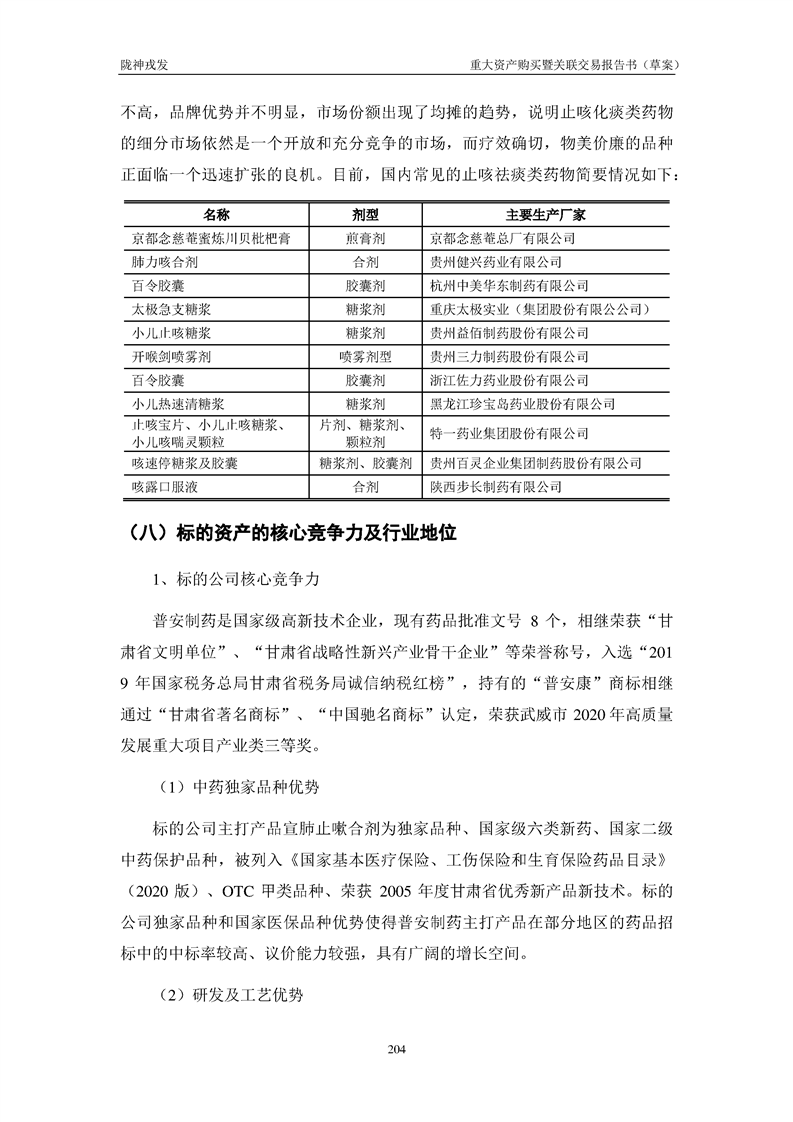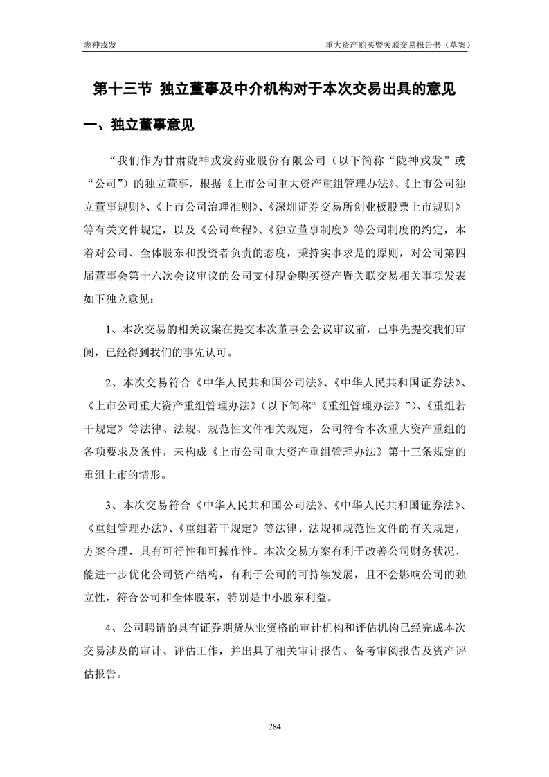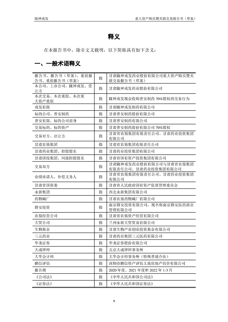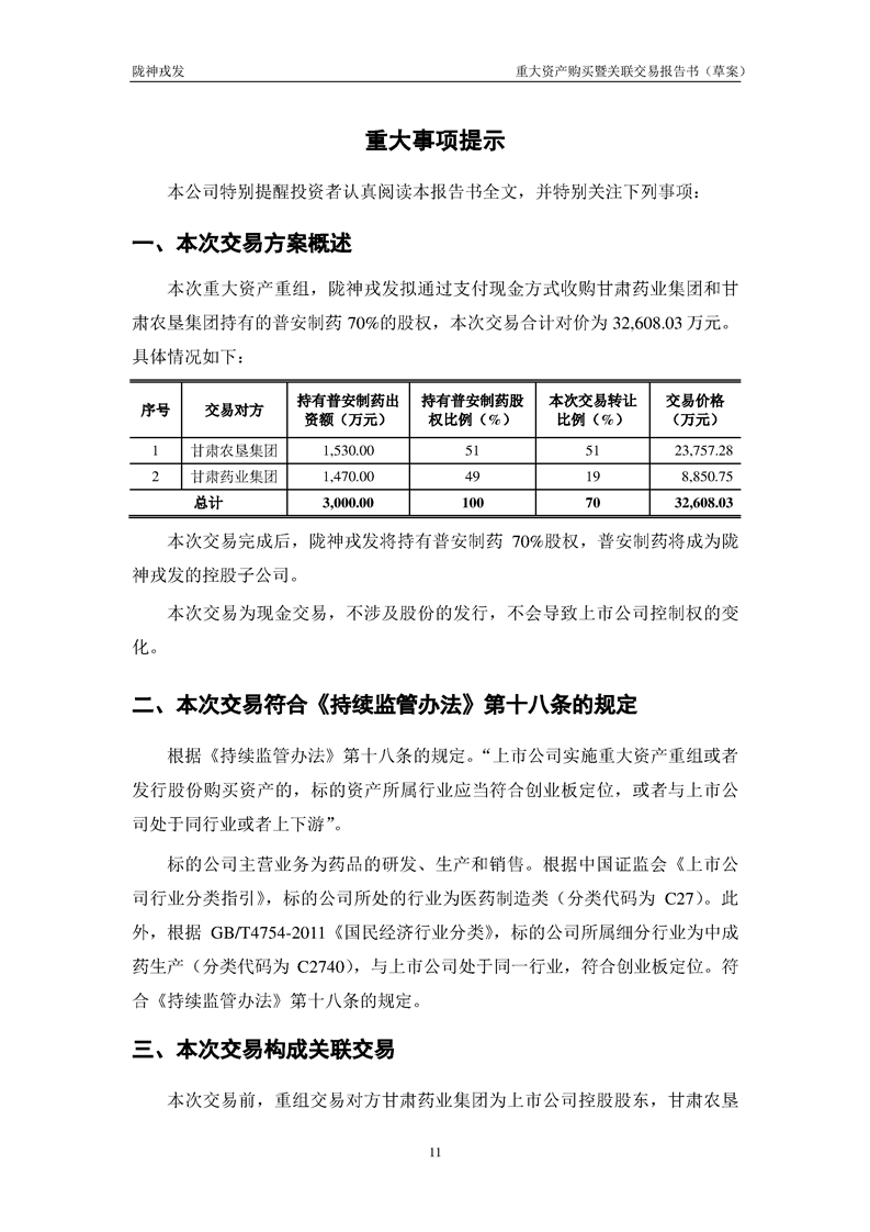 甘肅隴神戎發(fā)藥業(yè)股份有限公司重大資產(chǎn)購(gòu)買(mǎi)暨關(guān)聯(lián)交易報(bào)告書(shū)(草案)