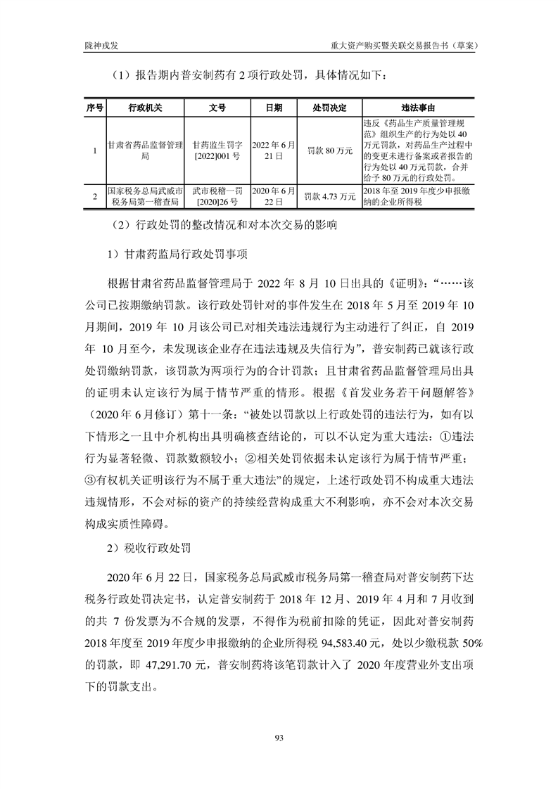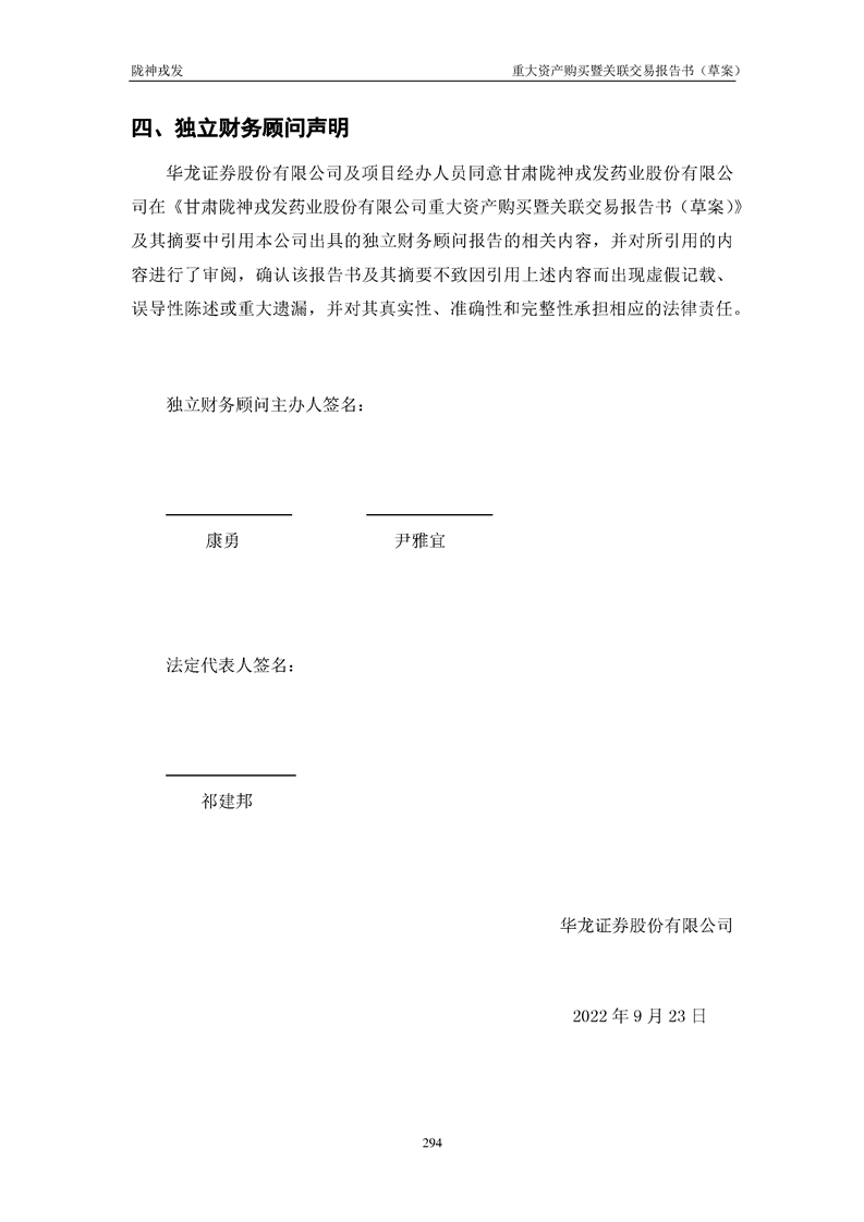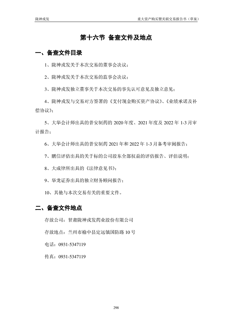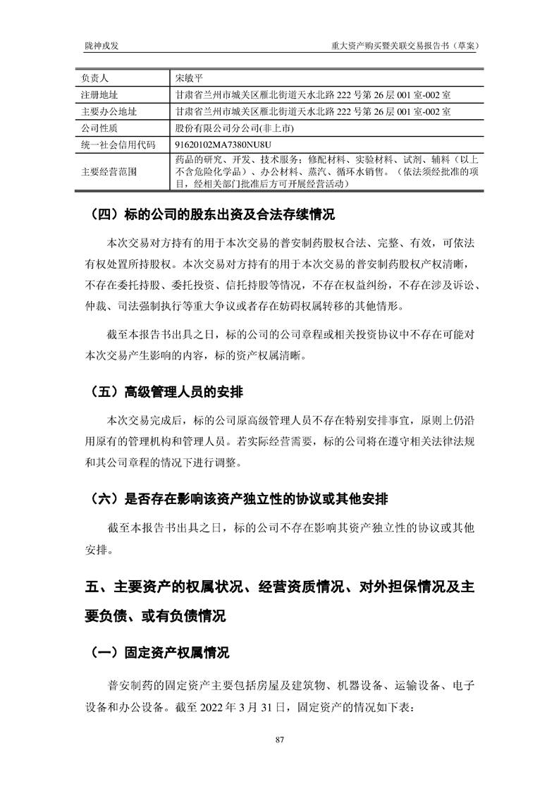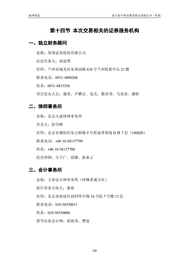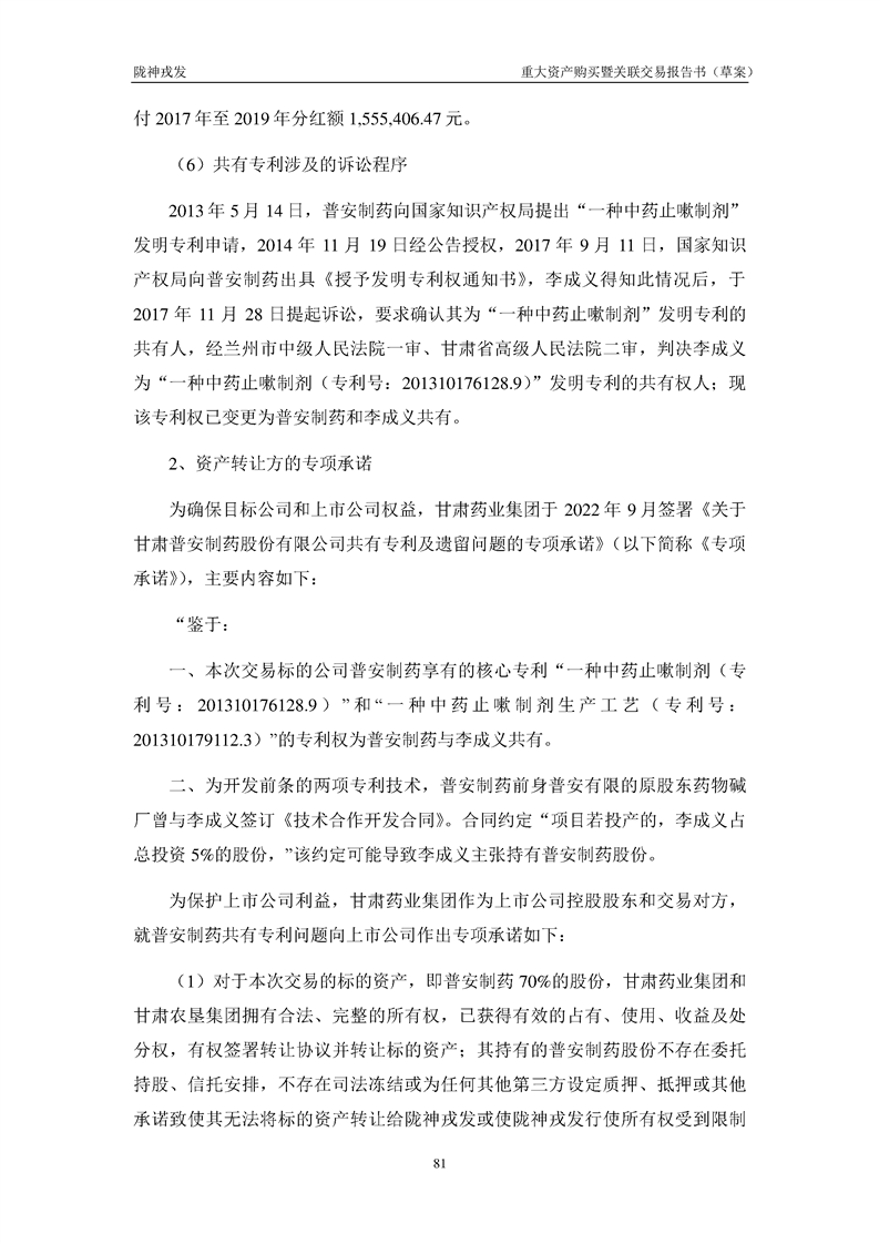甘肅隴神戎發(fā)藥業(yè)股份有限公司重大資產(chǎn)購(gòu)買(mǎi)暨關(guān)聯(lián)交易報(bào)告書(shū)(草案)