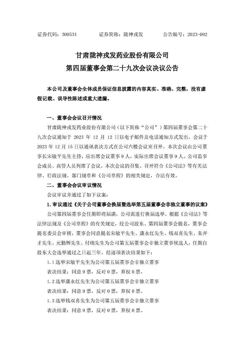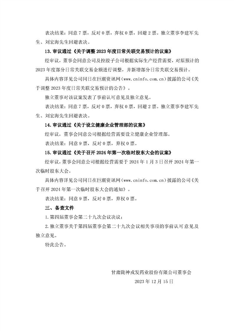 第四屆董事會(huì)第二十九次會(huì)議決議公告