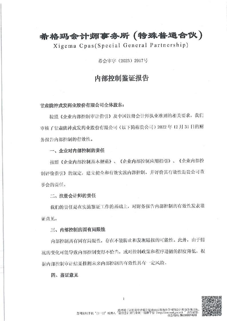 內(nèi)部控制鑒證報告