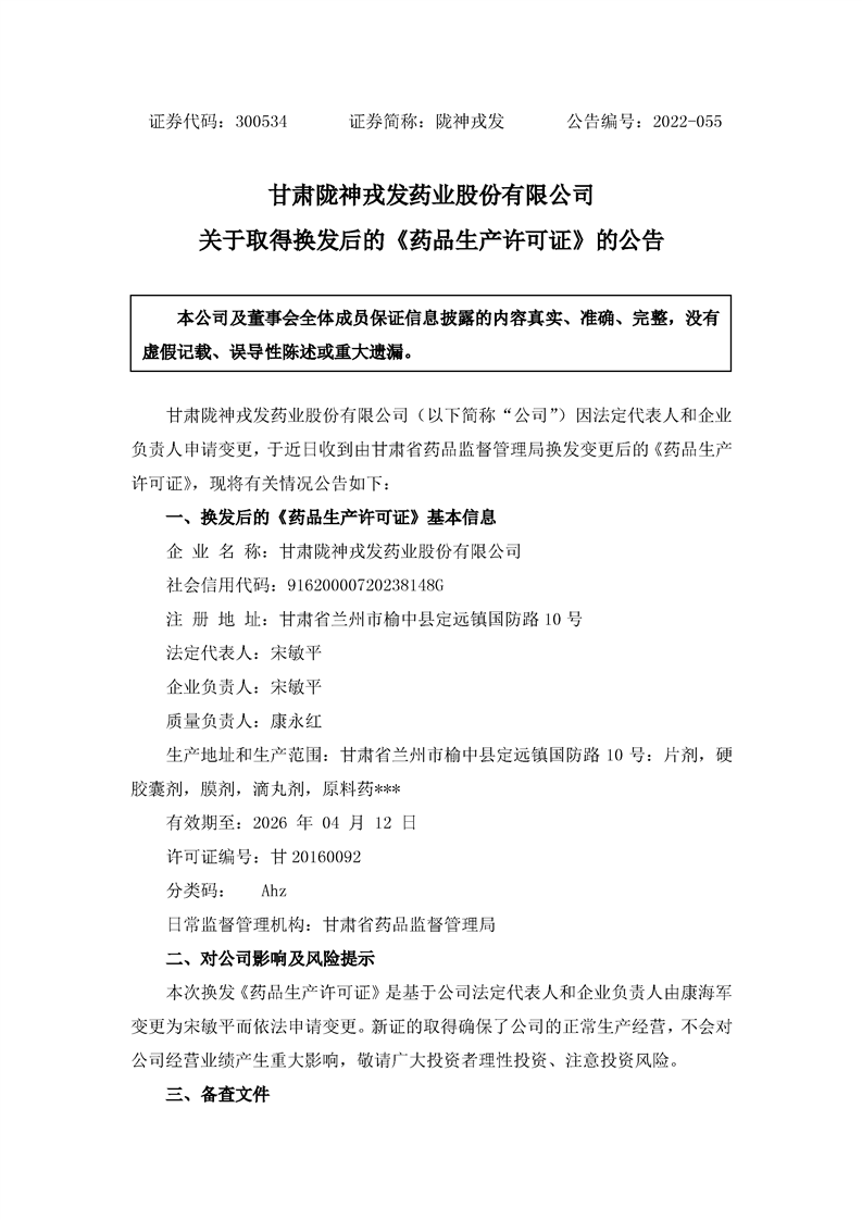 關(guān)于取得換發(fā)后的《藥品生產(chǎn)許可證》的公告