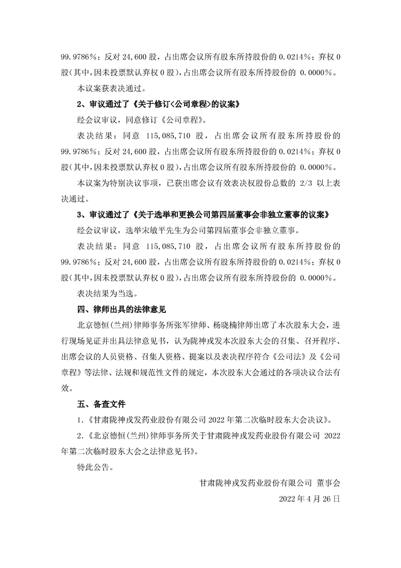 2022年第二次臨時(shí)股東大會(huì)決議公告