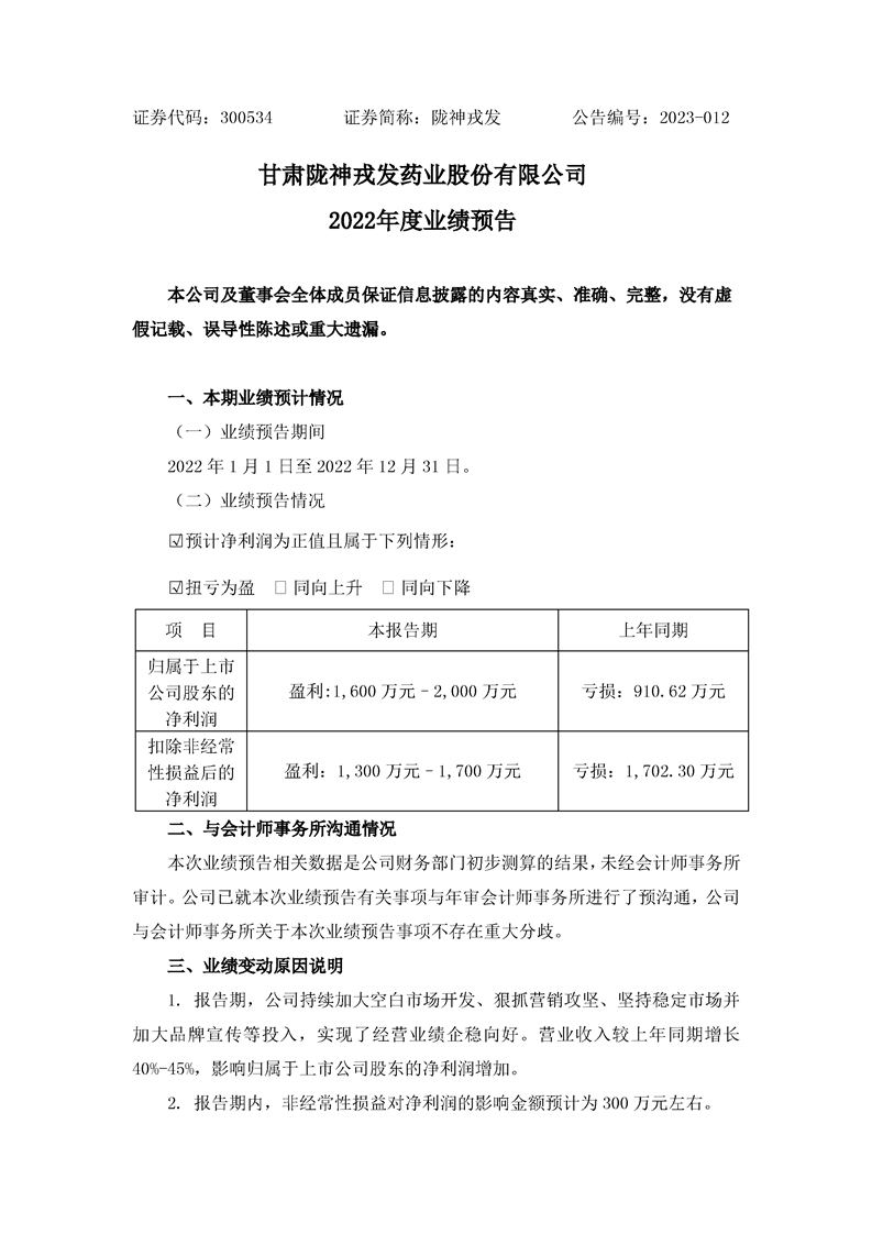 2022年度業(yè)績(jī)預(yù)告