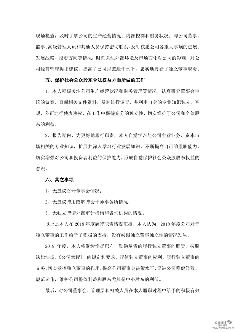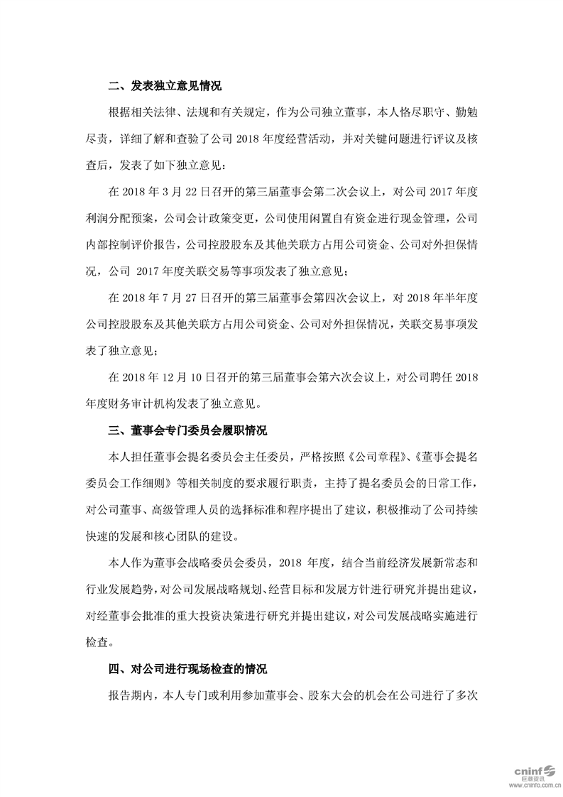 2018 年度獨(dú)立董事述職報(bào)告(石曉峰)
