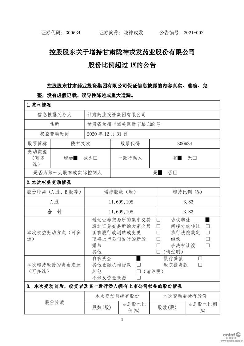 控股股東關于增持公司股份比例超過1%的公告