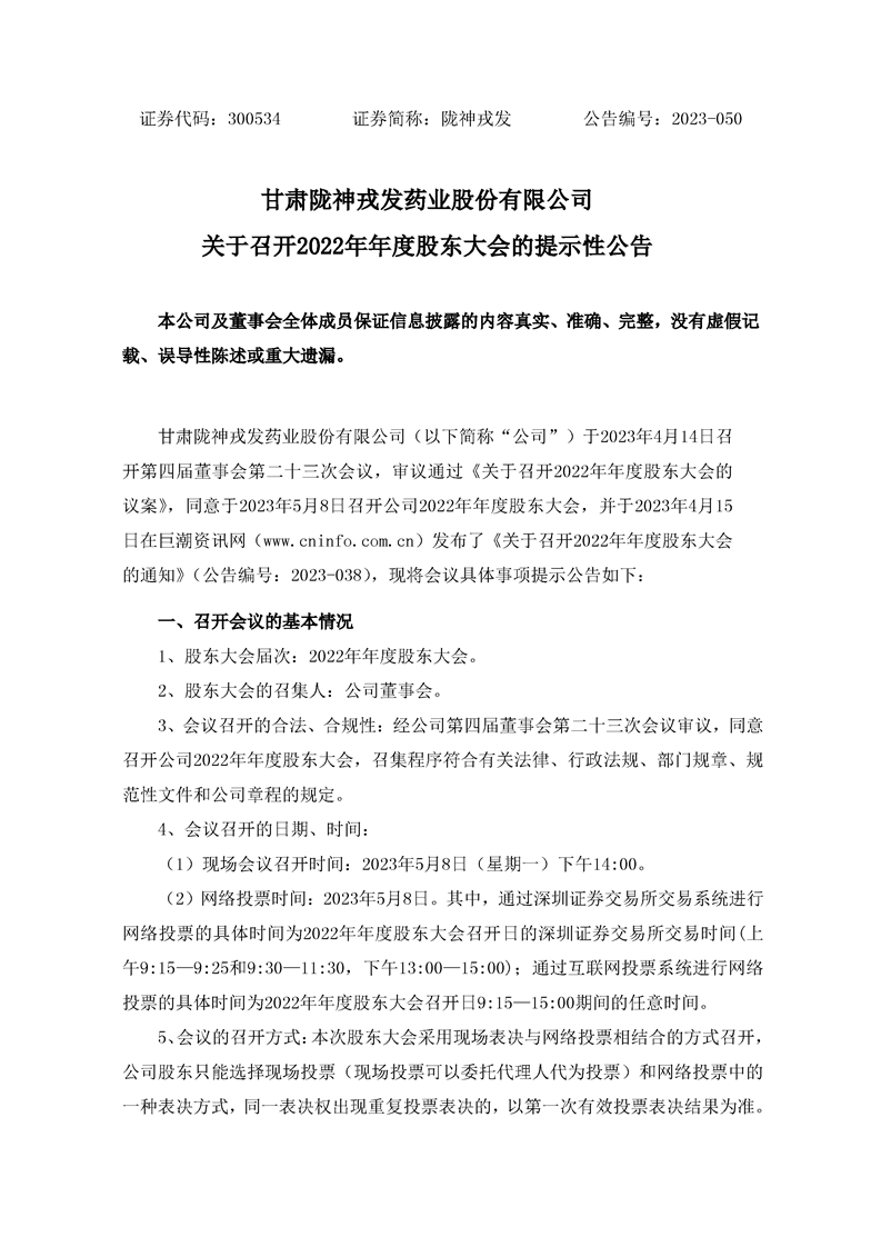 關(guān)于召開2022年年度股東大會的提示性公告