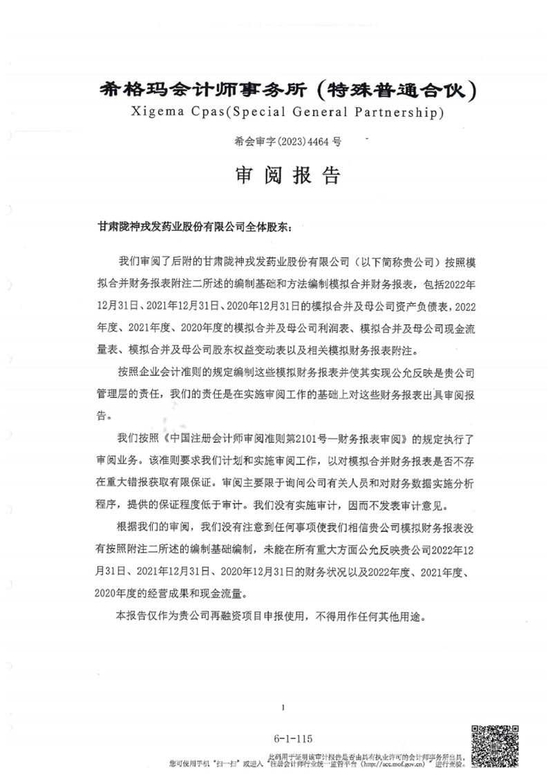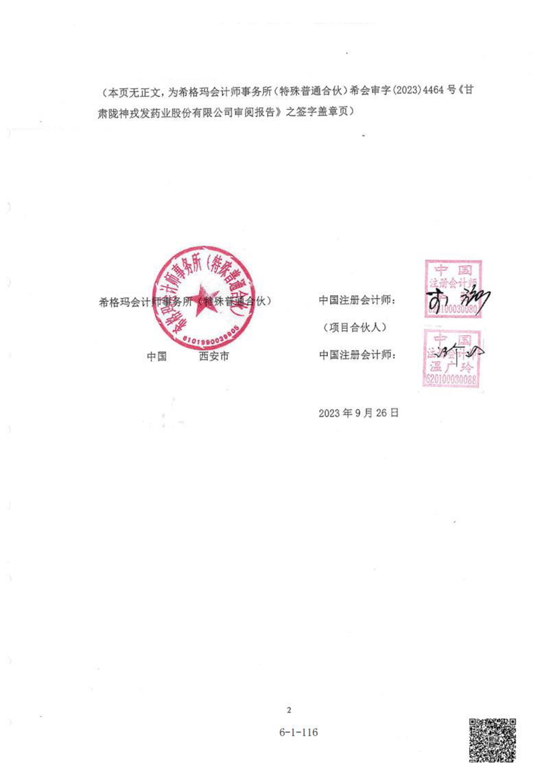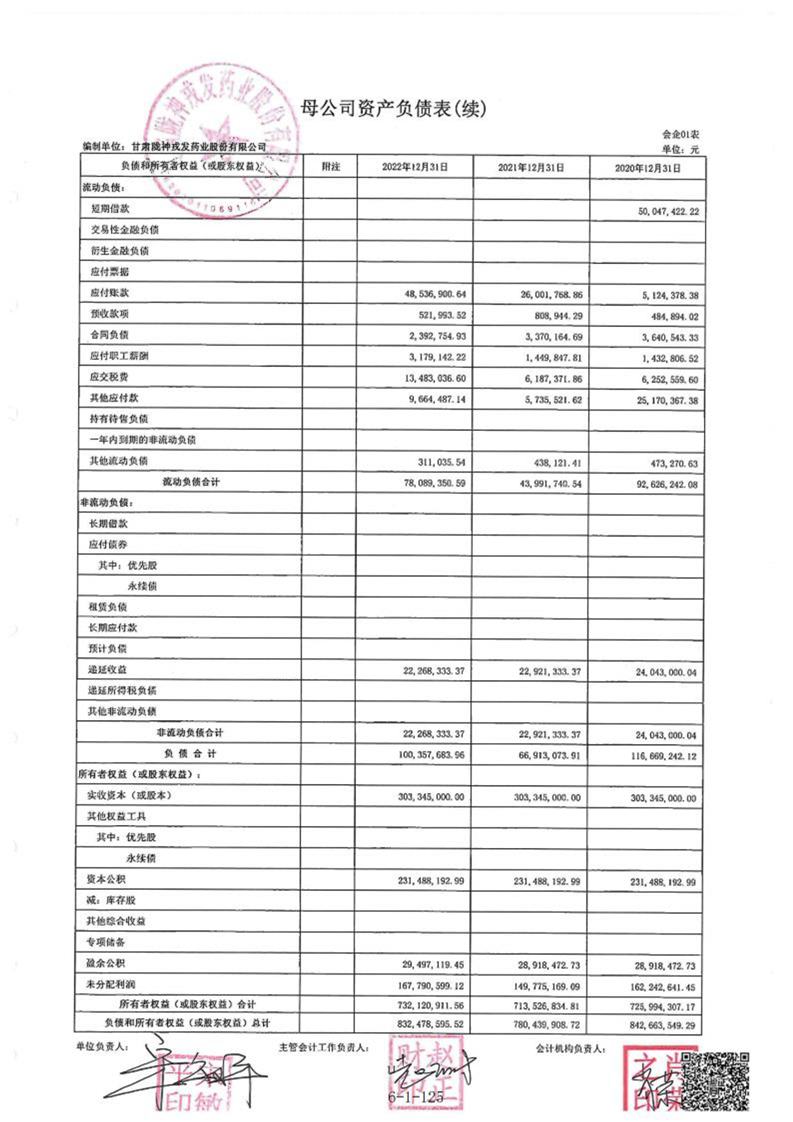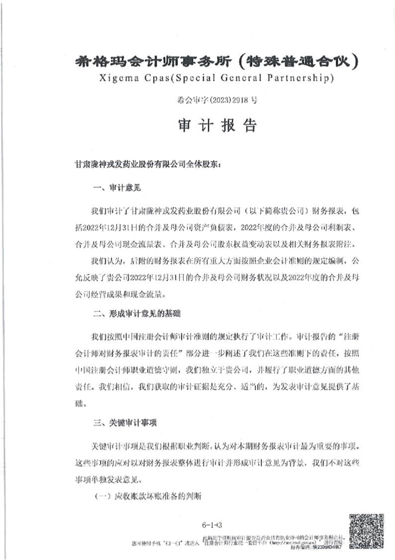 甘肅隴神戎發(fā)藥業(yè)股份有限公司最近一年的財(cái)務(wù)報(bào)告及其審計(jì)報(bào)告以及最近一期的財(cái)務(wù)報(bào)告