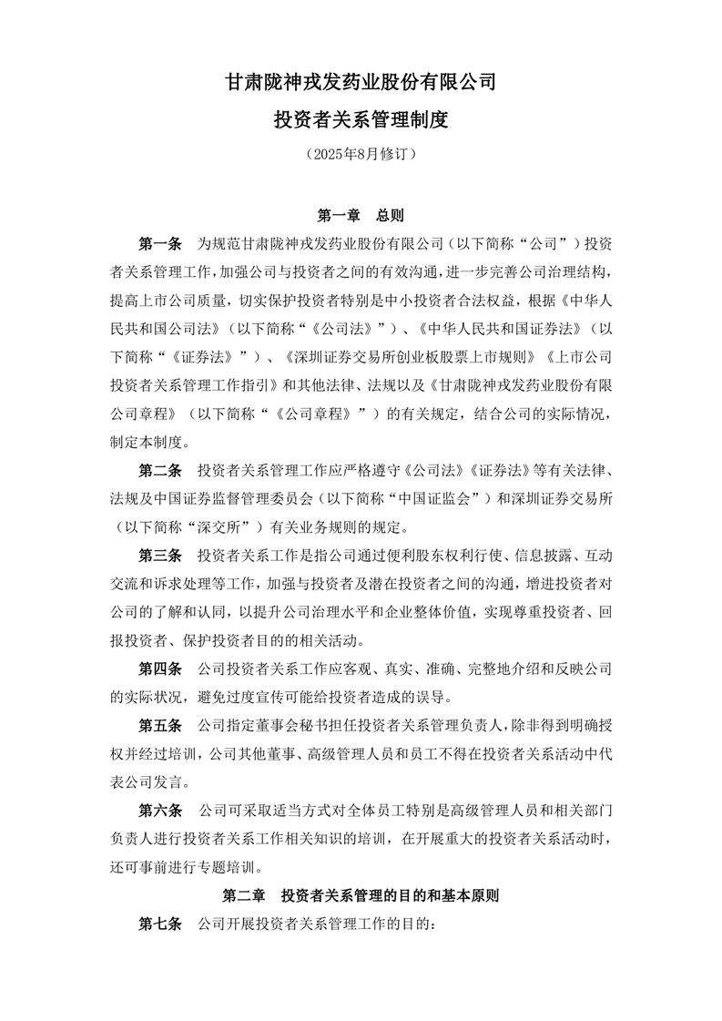 投資者關(guān)系管理制度(2025年8月)