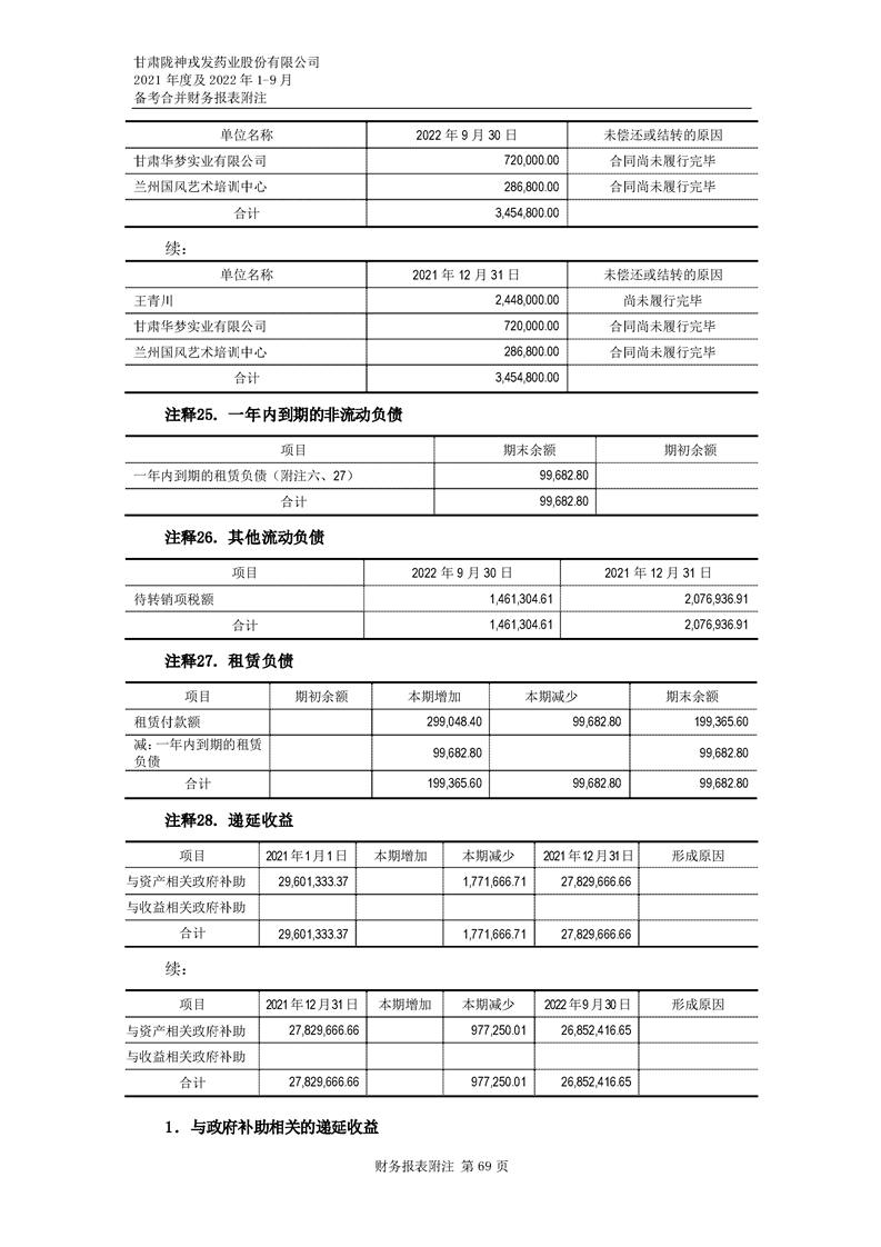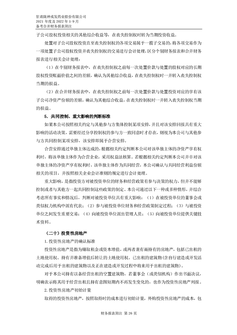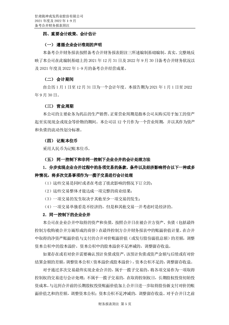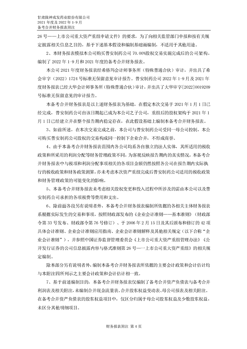 甘肅隴神戎發(fā)藥業(yè)股份有限公司備考財(cái)務(wù)報(bào)表審閱報(bào)告-大華核字[2022]0014487號(hào)
